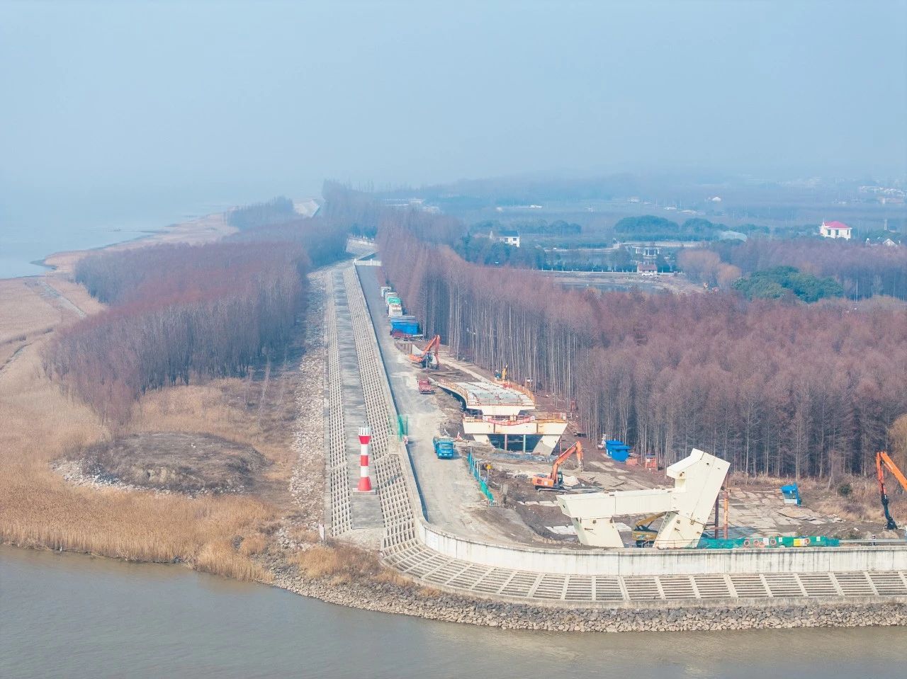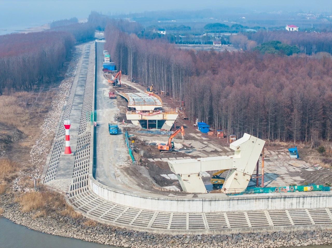 日前,摄影师拍摄了一组正在建设中的崇明生态岛环岛防汛堤标及景观道一期工程的三座闸外桥,它们分别是三沙洪闸外桥、鸽龙港闸外桥和新建港闸外桥。