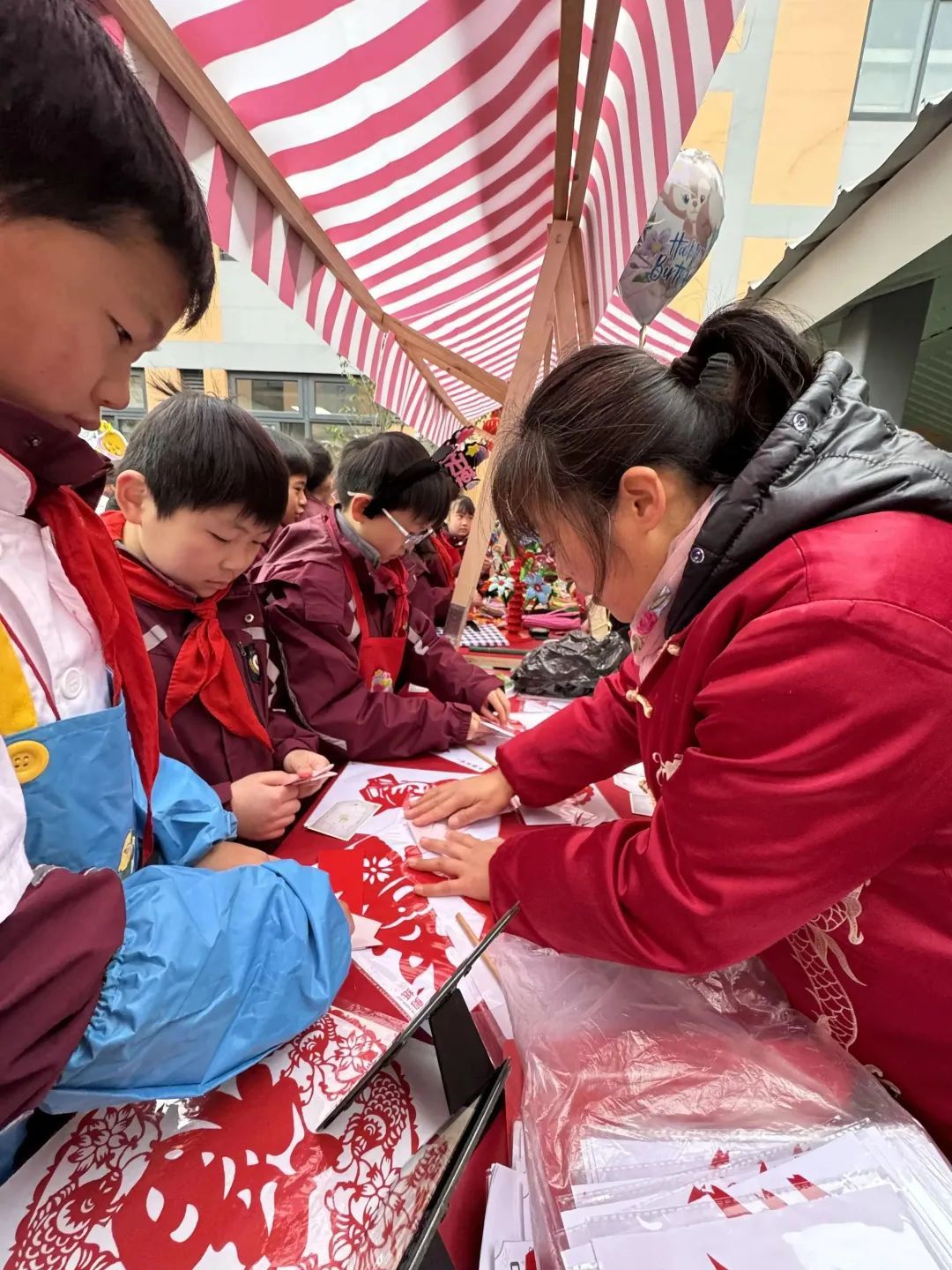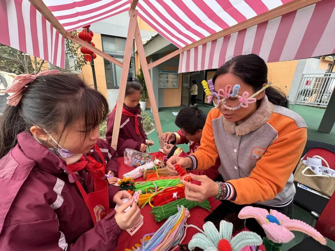 爱心义卖现场,部分孩子还拿到了学校精心设计的“老街特色摊位体验券”。拿着这些体验券,可以前往编织、皮影戏、陶泥、剪纸、丝绒花等文化展区,近距离感受老城厢非遗文化之魅力。本次活动还邀请了区阳光学校的小伙伴们共同参与。据介绍,爱心义卖所得将部分捐赠给慈善基金会,另一部分用于购买绿植,与即将到来的妇女节、植树节相结合,将美好的春意分享给妈妈们、社区老人等。