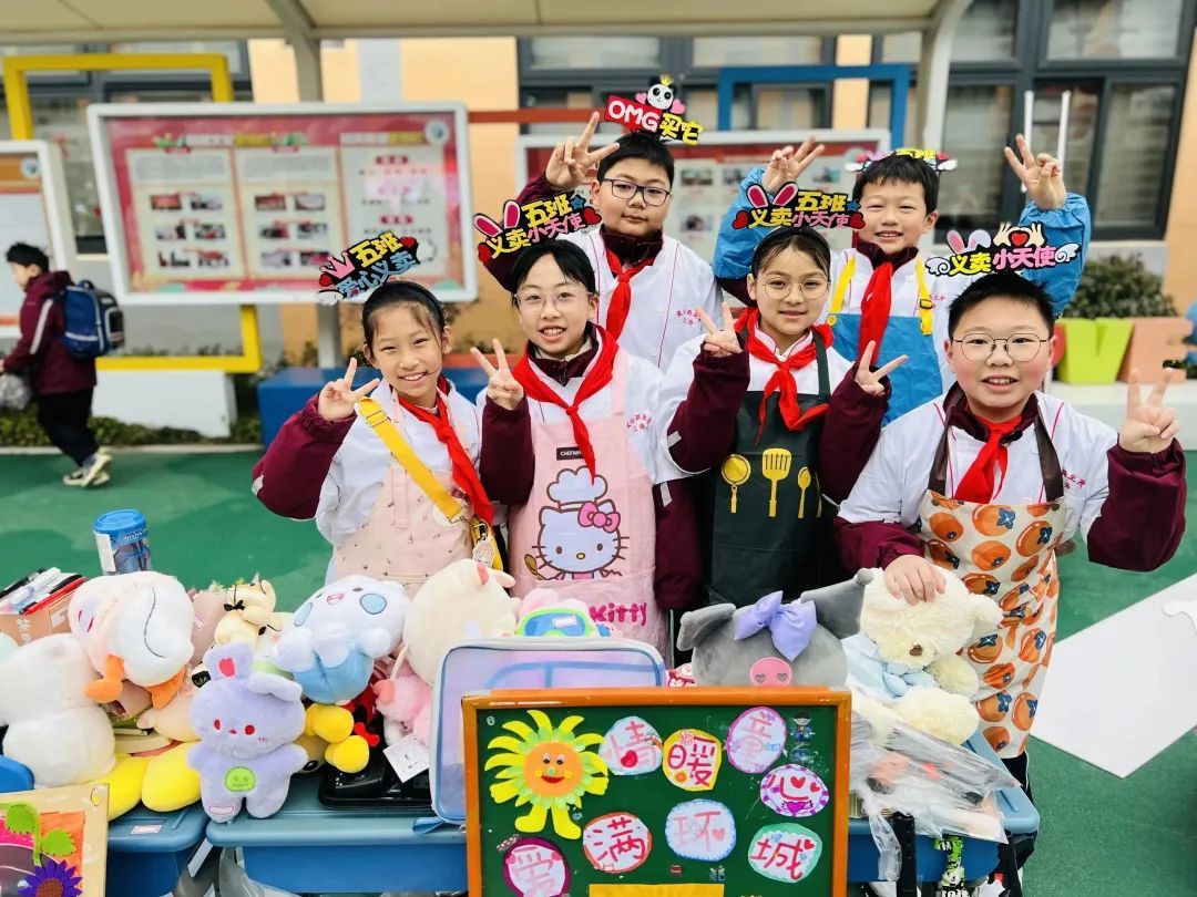 每一个义卖摊位,除了浓浓的爱心,还涵盖了融数学、语文、美术、音乐,德育等跨学科元素。副校长唐喆萍介绍,活动筹备期间,各学科老师就围绕项目化学习展开设计:数学教研团队就整理出“爱心义卖中的数学小问题”与孩子们一起探究,比如一年级小朋友可以在义卖中认识人民币、懂得找零,三年级学生制定购物计划,思考如何让购物变得更高效及有意义;而童谣编唱、义卖口号设计等,浓缩了语文、音乐等学科知识;摊位设计、海报绘画等环节则调动了美术学科的学习兴趣与需求。