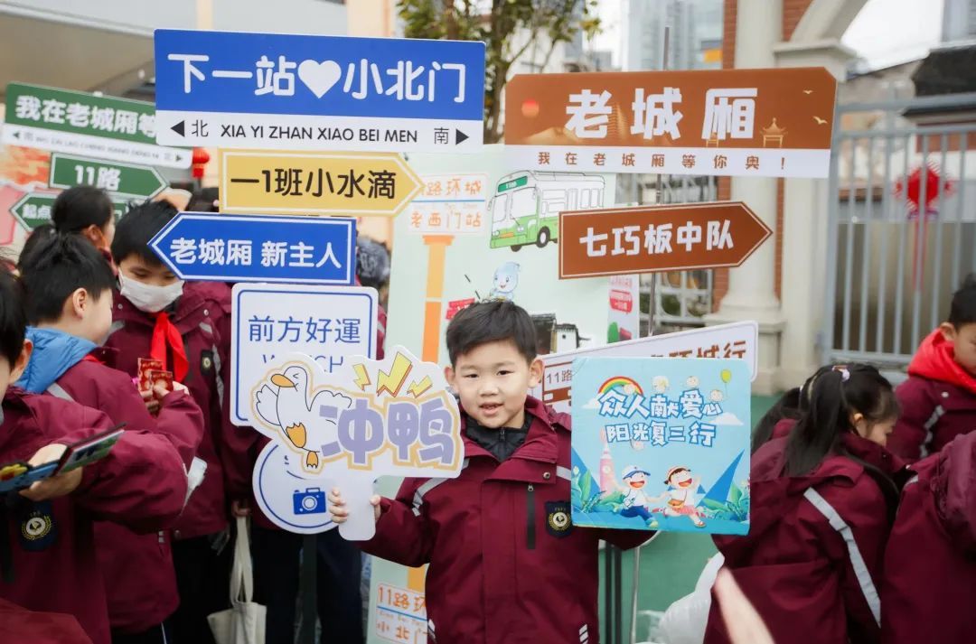 时间拉回一周前。大队辅导员唐慎尼老师组织大家讨论今年爱心义卖的主题时,孩子们灵光乍现,迸出不少好点子——有的说,咱们学校就在老城厢里,能不能把老城厢传统文化“复刻”到自己的校园里?接续这个话题,有孩子想到了经常搭乘的环城11路公交:“小南门、小东门、老西门……我们可以一起了解每个站点背后的历史和文化!”还有孩子结合爱心义卖的主题,发起了探寻老城厢慈善文化的议题……