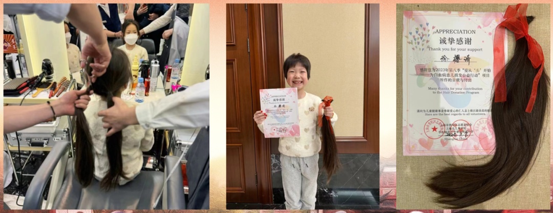叫卖队伍中,二年级女孩徐樱琦打扮成小书童的样子,一头短发造型利落中透着英气。就在前不久,小樱琦在妈妈的陪伴下,剪去了披肩长发,用于为白血病患儿定制假发的慈善行动。还在换牙期的她,“婴儿肥”的小脸上掩不住笑意:“能帮助到那些生病的小朋友,我觉得很有意义,至于头发嘛,剪掉很快还会再长长的呀!”