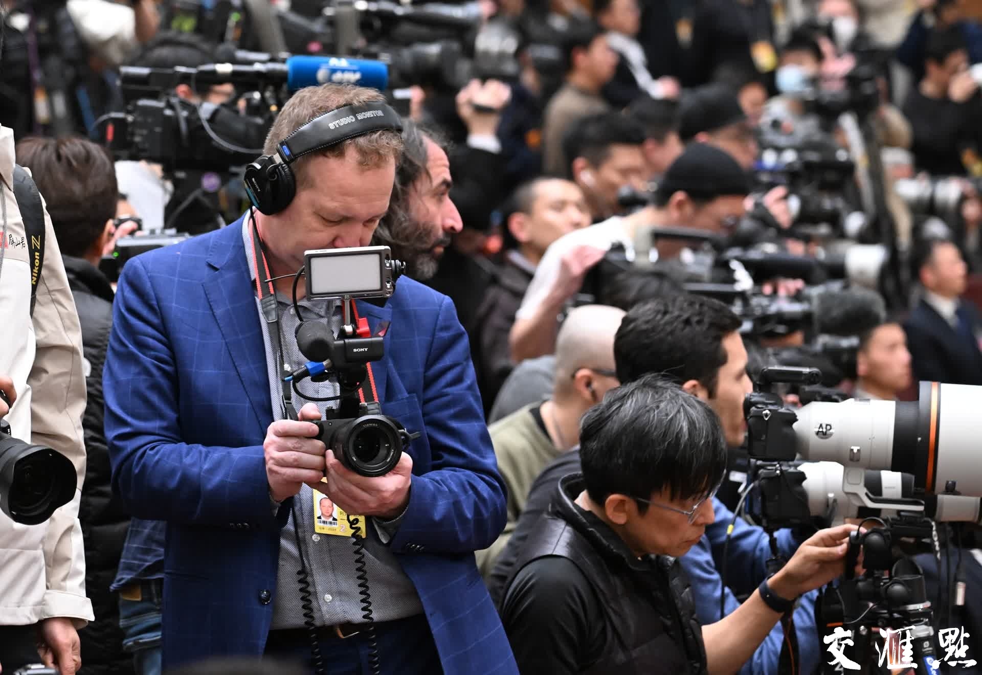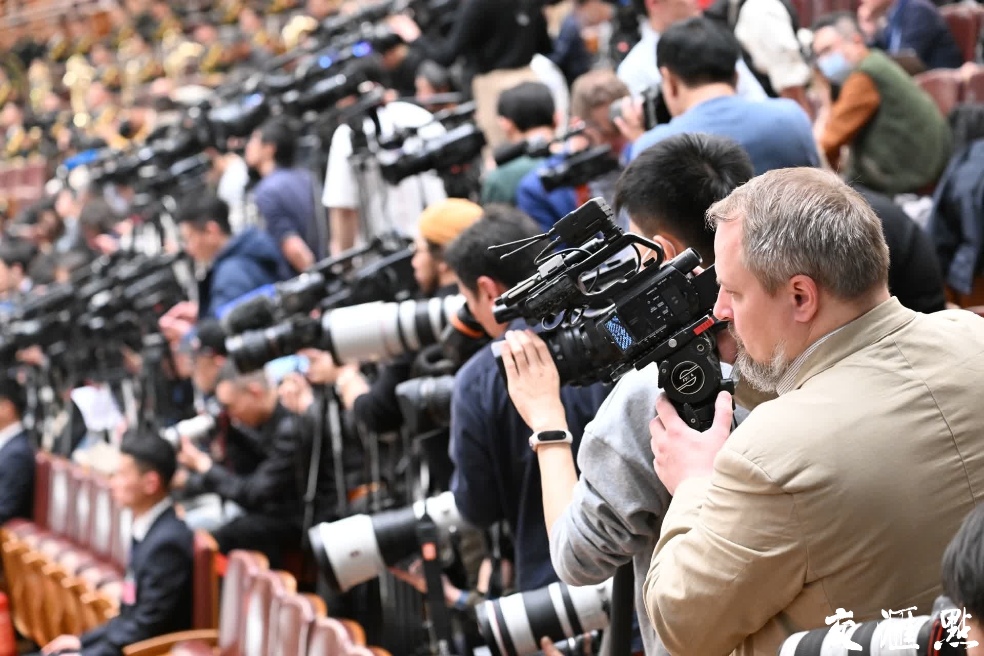 3月4日,中国人民政治协商会议第十四届全国委员会第二次会议在北京人民大会堂开幕。作为世界了解中国的重要窗口,全国两会吸引大量国际媒体的目光,今年共有3000多名中外记者报名采访全国两会。 新华日报·交汇点记者 余萍 摄