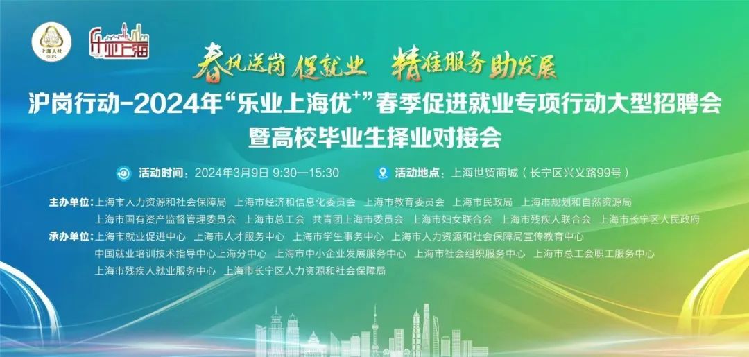 沪岗行动——2024年“乐业上海优+”春季促进就业专项行动大型招聘会暨高校毕业生择业对接会重磅来袭!