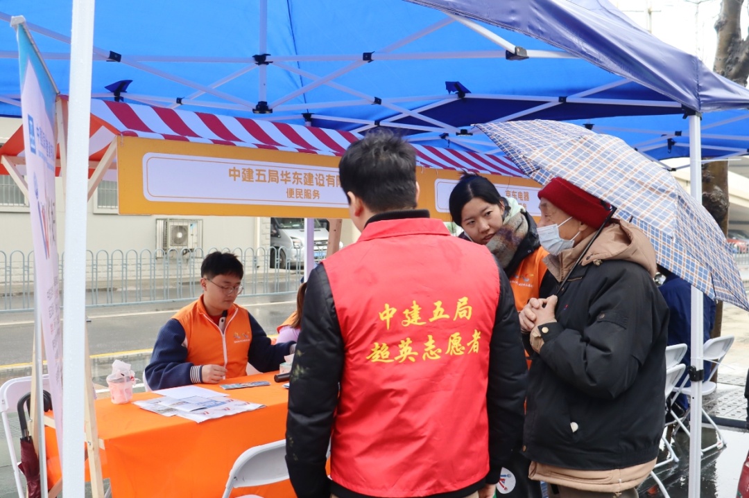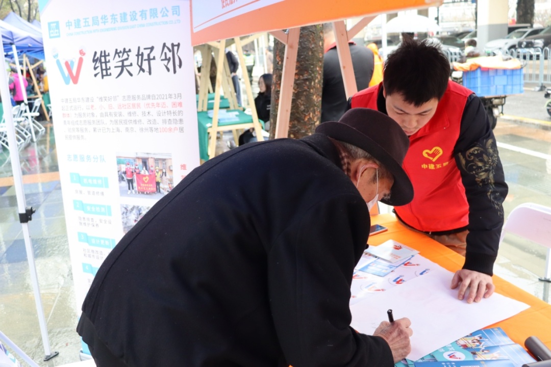 弘扬新时代雷锋精神,争做文明活动先行者,发扬“以集市惠民生,送服务零距离”的理念,今天(3月5日),中建五局华东建设“维笑好邻”志愿服务团队积极参与共和新路街道的“3·5”学雷锋活动中,用自身在设计、施工、装修等方面的专业能力,为众多居民提供力所能及的帮助。
