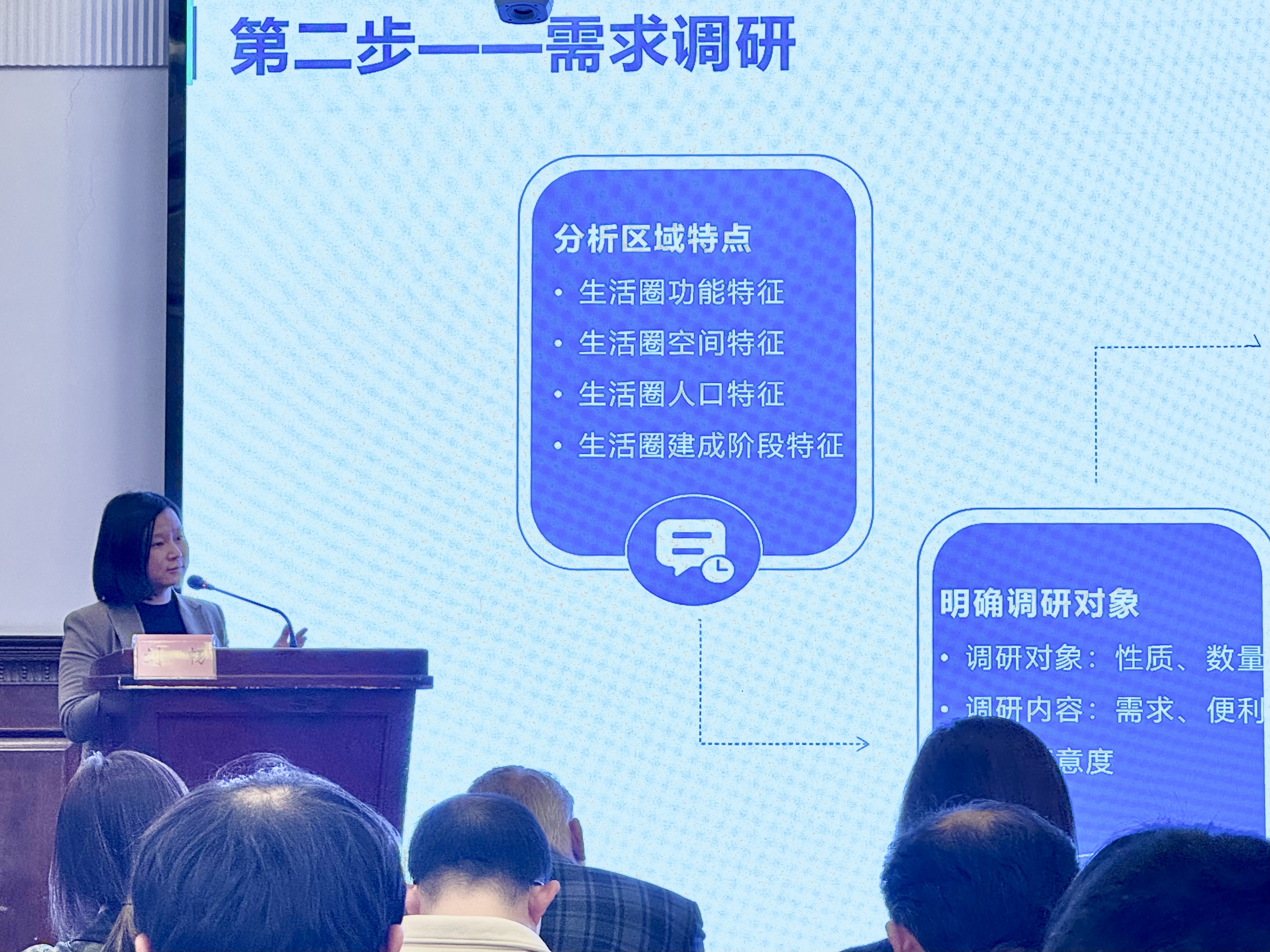 在《从全域行动到在地实践——上海“15分钟社区生活圈”2023行动与南京西路街道社区规划试点》演讲中,吴秋晴分享了上海市城市规划设计研究院以南京西路街道为试点样本,展开各项创新探索,践行从行动规划到综合性规划的转型。基于街道趋于复杂演化背景下的社会与空间结构,筛选出4个板块9个条线的社区发展核心要素,定制27项规划策略,并以“片区”作为基层治理空间单元的网格化管理创新,思考相关编制技术与机制的创新,探索对社区规划编制体系的系统完善。