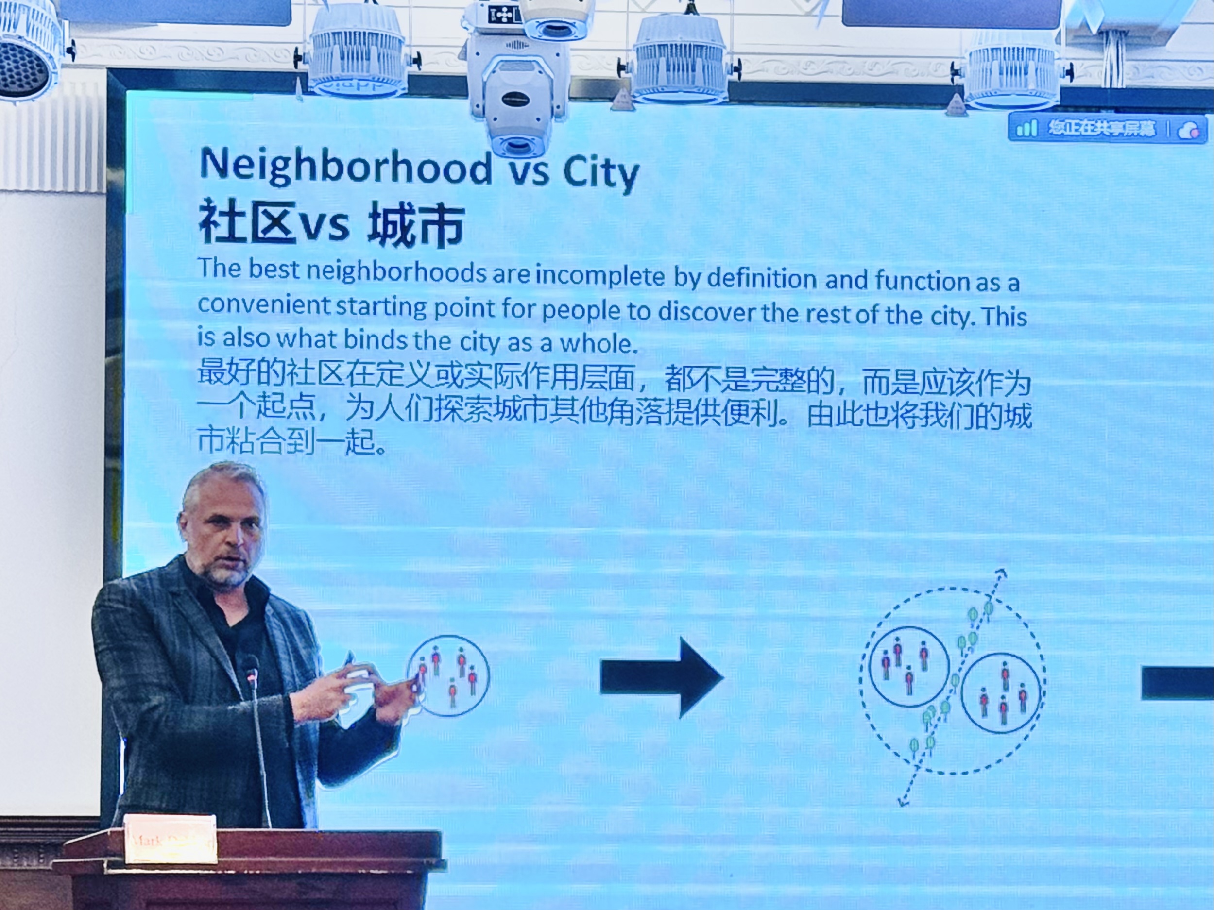 “15分钟生活圈”概念是指在步行或骑行15分钟距离内满足居民生活需求。在演讲中,INBO 建筑师合伙人、亚太区CEO Mark Dekker探讨了如何在围绕城市规划中运用“15分钟生活圈”的设计原理。