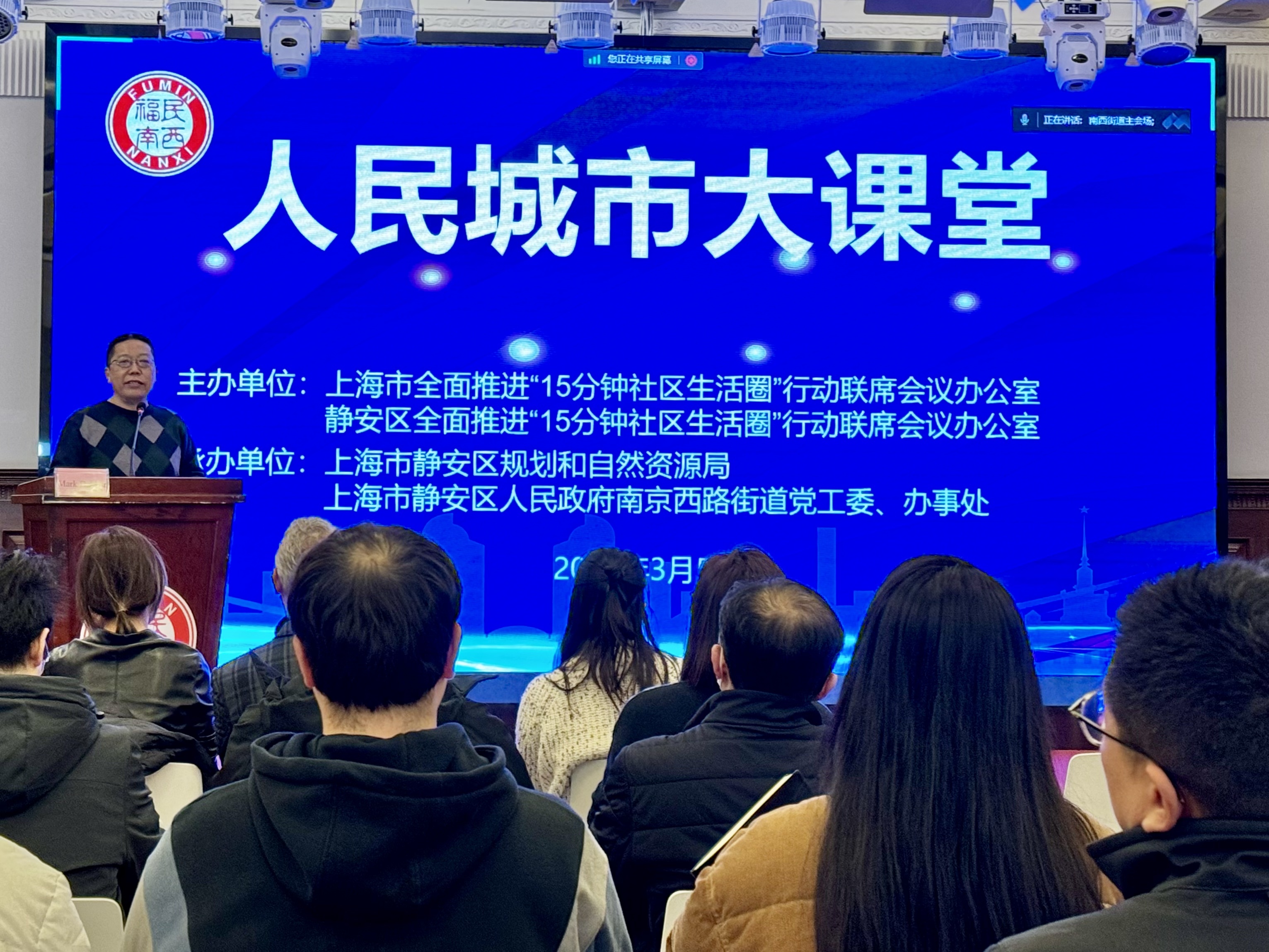 3月5日,2024年“人民城市大课堂”首期专题培训在静安区开讲。活动邀请了三位不同领域的专家,围绕“15分钟社区生活圈”的社区规划与社区建设作主题演讲。市、区“15分钟社区生活圈”行动相关牵头部门、社区规划师及相关设计团队,积极参加本次线下和线上培训。