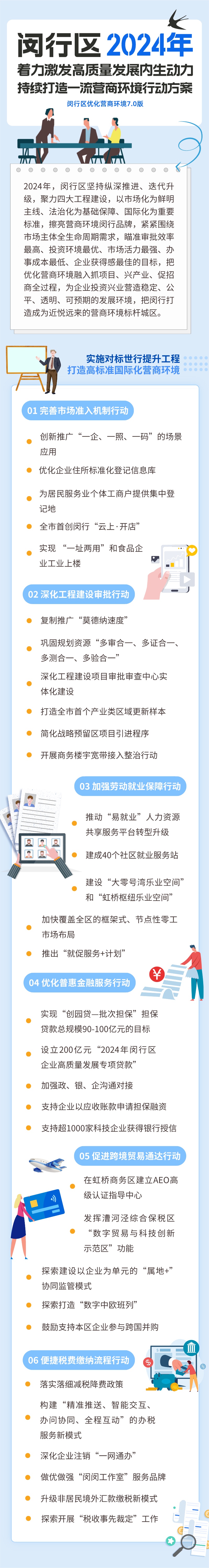 3月7日,《闵行区着力激发高质量发展内生动力 持续打造一流营商环境行动方案》(优化营商环境7.0版)发布,主要包括对标世行提升、助企服务增值、良法善治保障、区域标杆塑造四大工程、20个专项行动、108条改革事项。详见图解↓