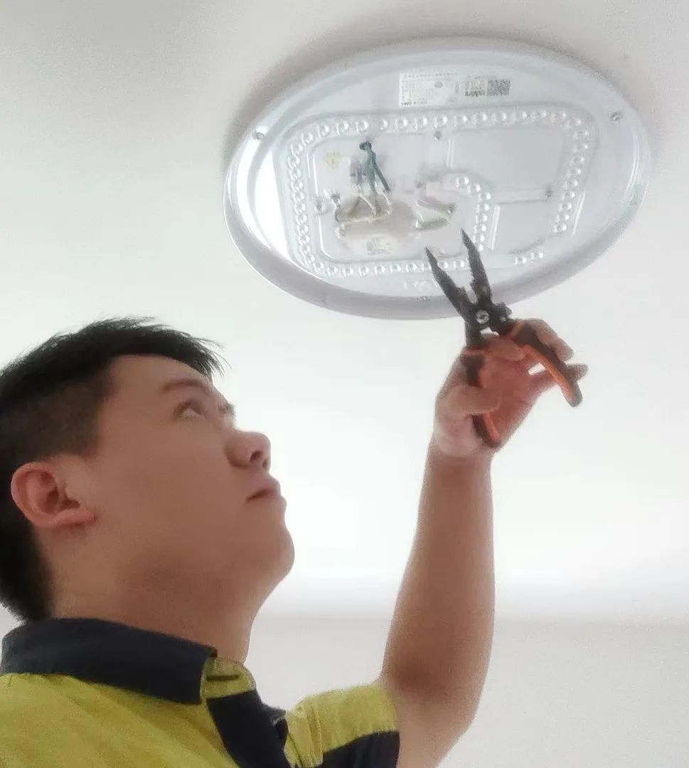 经过检查,原来是因为电路短路导致的灯泡损坏,需要进行更换。夏登光更换好其中一盏灯后发现,另一盏老式照明灯规格并不常见,物业仓库没有合适的配件更换。“张阿姨年迈且视力不佳,在光线不好的情况下,万一不小心摔倒后果不堪设想。”夏登光并未作罢,他仔细测量了灯罩尺寸并拍下灯管照片,终于在一家五金店买到合适的灯泡。