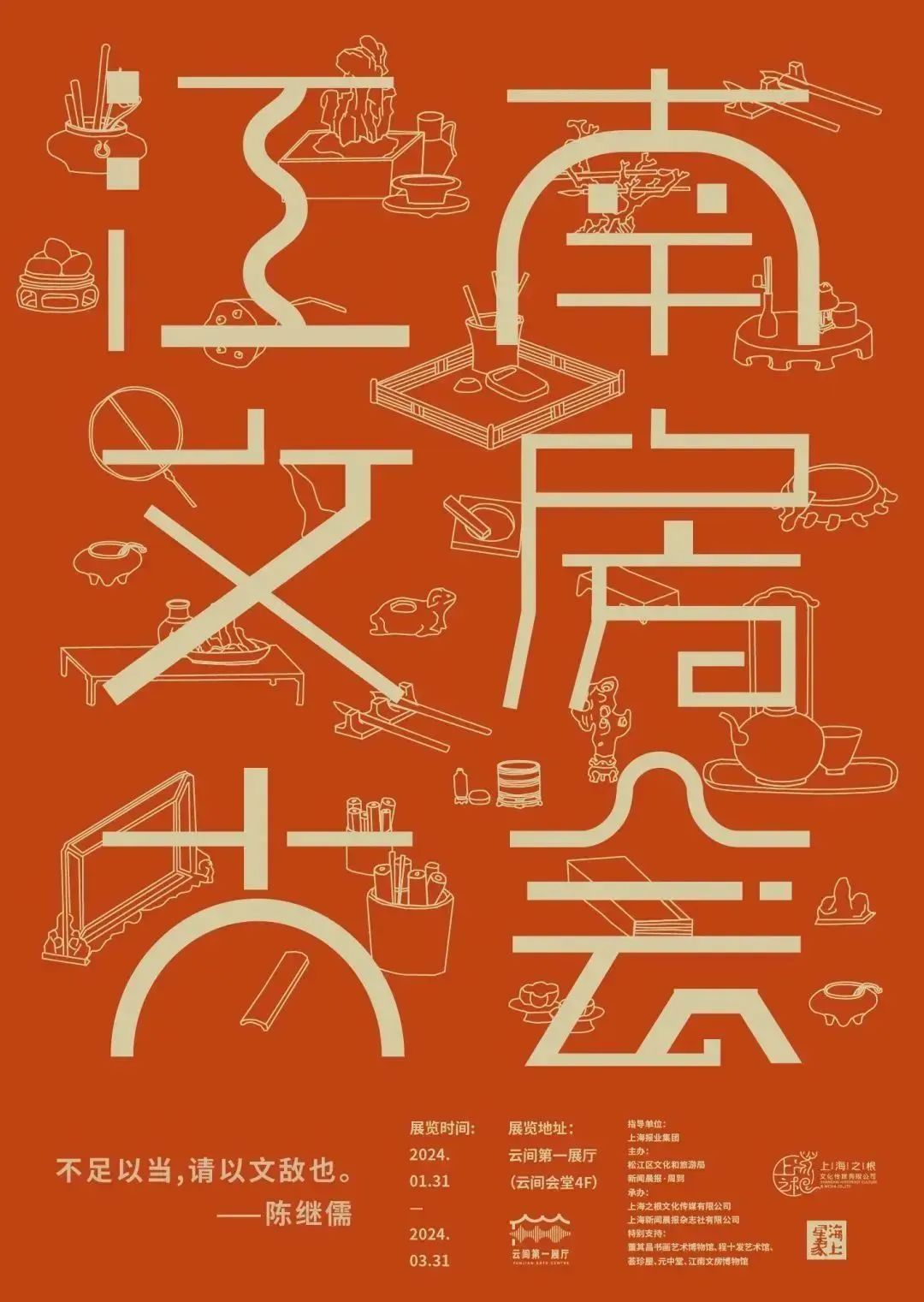 云间会堂文化艺术中心一号展厅推出“江南文房大会”,以文房为题,立足江南,涵盖艺术、哲学、美学、家居、香道、音律等诸多领域,跨越古今书房的时空界限,复现江南在自然与人文、历史与人性、运势与人情中炼就的千年风韵。