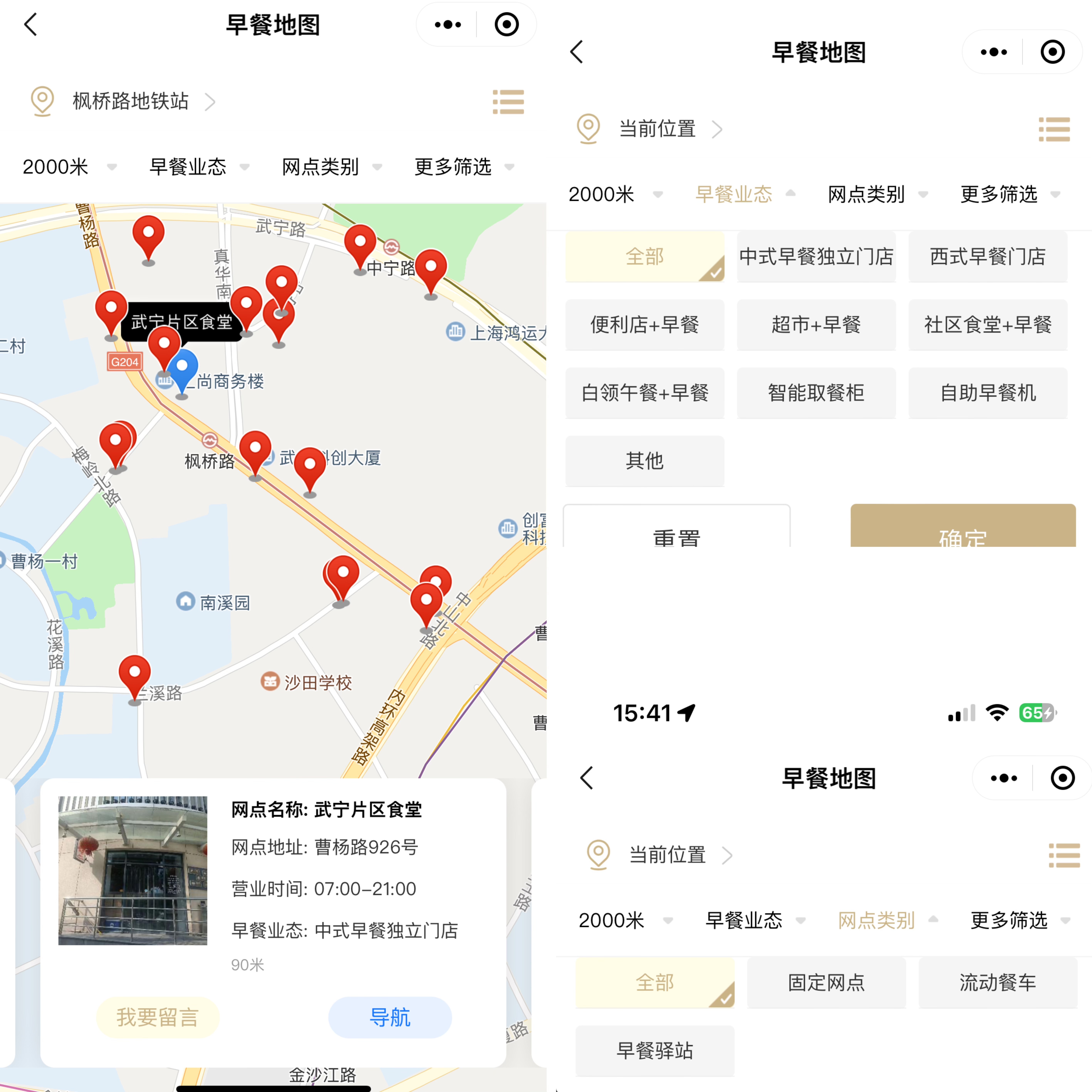 在上海,吃早餐是一件十分便利的事情,市民可以通过多种方式购买到暖胃早餐。当市民用手机微信或支付宝打开“随申办”小程序,输入“早餐地图”,就可以搜索到由上海市商务委制作的附近的早餐点,既有像传统的实体店铺,也有像流动早餐车、实体柜等新式店铺。记者搜索发现,以普陀区枫林路地铁站为例,在2公里范围内,有超过18家店铺提供早餐服务,有的店铺提供数字化服务,人还没到,早餐便已点好了。