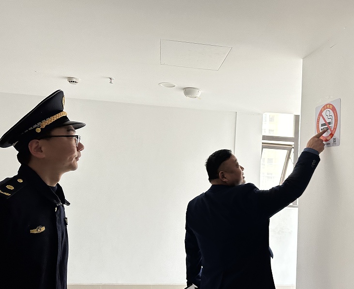 随后,执法人员前往物业公司,针对鑫乐苑的现状向物业服务公司宣传了《条例》内容,并介绍了禁烟控烟的相关法律政策以及物业公司在政策落实中所承担的责任和义务,不仅要求物业公司在公共电梯内设立统一的禁烟标识和监督电话,还要定期组织人员巡查,一旦在公共区域内发现吸烟问题,也要及时做好劝阻,同时,要求物业公司向居民做好公共区域禁烟宣传,提升居民禁烟意识。“物业服务公司在物业管理范围内的禁烟场所有着法定的控烟任务,要充分发挥监督管理作用,一并带动居民共同营造健康无烟环境。”泖港镇综合行政执法队相关负责人说。