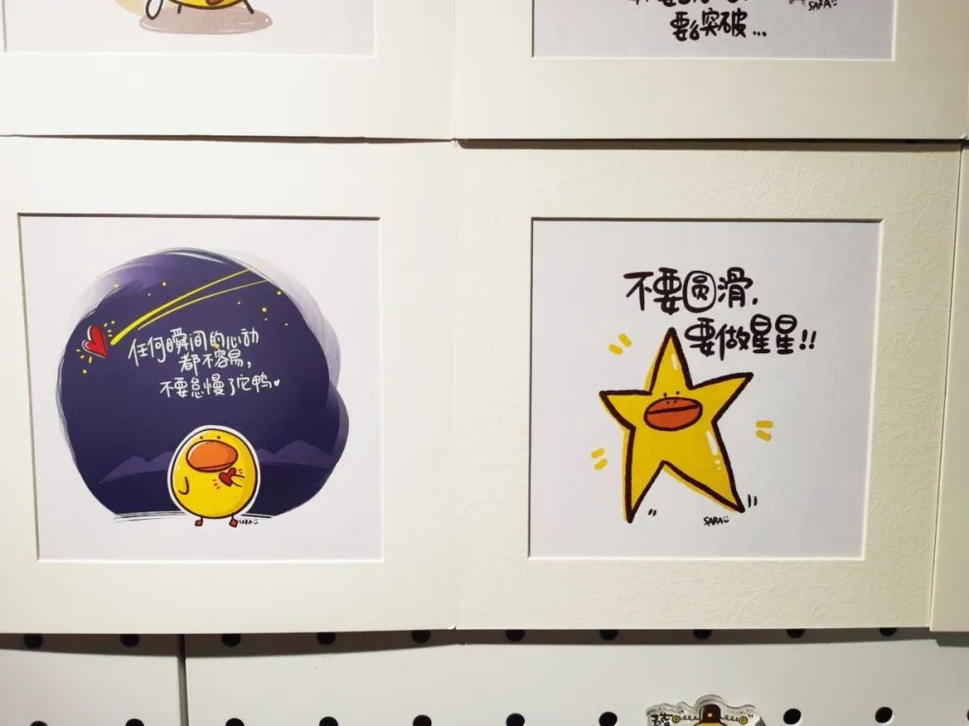 春季来临之际,故事商店邀请插画艺术家、愚园路居民等轮流担任店长,以融合小鸭、小猫、小青蛙等可爱动物元素的艺术作品及文创产品,为市民带来萌趣可爱和治愈温暖。 走进店内,首先映入眼帘的是“鸭鸭精”IP插画系列作品。“不要圆滑,要做星星!”“不恋过往,不惧未来。”“我的脑袋上有颗向日葵种子,开花后,太阳走到哪,我就看向哪儿。”......“鸭鸭精”是一只心宽体胖的小鸭子,在插画中,它有着红红的嘴巴,短短的腿儿,面对困难,它也总是充满希望。 “‘鸭鸭精’就像普通生活中的‘小人物’。”“鸭鸭精”IP作者孙艳雯介绍,她的本职工作是通过视觉插画艺术进行文化建设、战略梳理、认知引导等方面的工作,合作客户大多为企业、学校等。工作之余,希望有一些柔软的东西来中和,这是她最初创作“鸭鸭精”的理由,既是当下心情的有感而发,也希望通过插画给更多人带来治愈。 除了能引发现代人共鸣的插画作品,新年台历、手机支架、冰箱贴等“鸭鸭精”IP原创文创产品也在故事商店线下首发。月历台历的每一页为一个月,根据月份、季节、节日的不同,“鸭鸭精”所在的场景也各不相同。例如,三月份万物生长,小鸭子便站在满是绿意的草坪上为小草浇水。 手机支架带有“撑住”“财貌双全”等文案,为产品增添了情绪价值,上架以来,得到许多市民的喜爱。担任故事商店店主,对孙艳雯来说是一个不小的挑战,性格内敛、喜爱藏在“幕后”的她,第一次走到“台前”,“当店主的过程很有意思,能面对面与市民沟通、与粉丝对话。在这里看到很多其他店主开发的文创,学习到不少经验,我也要一点点改进提升。” 长宁咖啡明信片手绘电子稿 据了解,孙艳雯对长宁拥有深厚的感情,也见证了愚园路的更新改变。她与合伙人曾通过视觉插画的方式,助力愚园路城市更新项目主体企业CREATER创邑完善相关项目推进方案。2022年,她将个人工作室和自己的家都搬迁至长宁。2023年,“长宁咖啡文化节”中的“咖啡地图”“咖啡明信片”成为一大亮点,这是她和合伙人实地走访长宁魅力空间和特色咖啡馆后所创作,有心人也许在当时就已经在长宁“偶遇”过“鸭鸭精”。“今年,我将继续用脚步丈量长宁和上海,听取更多人的故事,并将其展现在‘鸭鸭精’IP的插画和文创中。”她说道。 故事商店运营方社趣更馨营造中心表示,一到春天,很多人都会联想到“竹外桃花三两枝,春江水暖鸭先知”的诗句。在挑选3月店主时,正好有好多位申请报名的艺术家,自身创作中都有小动物。例如,艺术家RiceBeing笔下的《岛民漫画》,包含拽呱、喵仔、鸭仔等角色,以拟人化的动物形象,聚焦人们生活中存在的挑战,以荒诞的哲思角度,呈现美好的生活状态。 独立插画师、设计师Tea茶酒伴,创作了IP女孩“茶茶”和兔子“古奈”的系列插画《送你一场好梦》,以温暖明媚的色彩塑造纯真的梦幻世界。近期,其以家中爱宠为形象,创作了两个新角色,一只因贪吃樱花而变成粉红色的“粉花猫”,以及身体像黄油一样柔软的小狗“黄油汪汪团”,衍生出的文创产品已同步在故事商店上新。 3月期间,还将有多位生活在愚园路的居民前来参与。林琳将用不同的狗狗元素绘画,讲述愚园路上和宠物共处生活的故事;悉尼和女儿将带来诸多描绘愚园路街区的水彩作品。 故事商店 地址:长宁区愚园路1046号 开放时间:10:00—18:00(周一店休) “鸭鸭精”IP作者驻店日期:即日起至3月17日 林琳驻店日期:3月18日至3月24日 悉尼驻店日期:3月25日至3月31日 提示:以上店主及各艺术家作品、文创将持续展陈至3月底 部分图片来源于社趣更馨营造中心 撰稿/摄影:李嵩楠 编辑:程 前 责编:高 琴 *转载请注明来源于“上海长宁”
