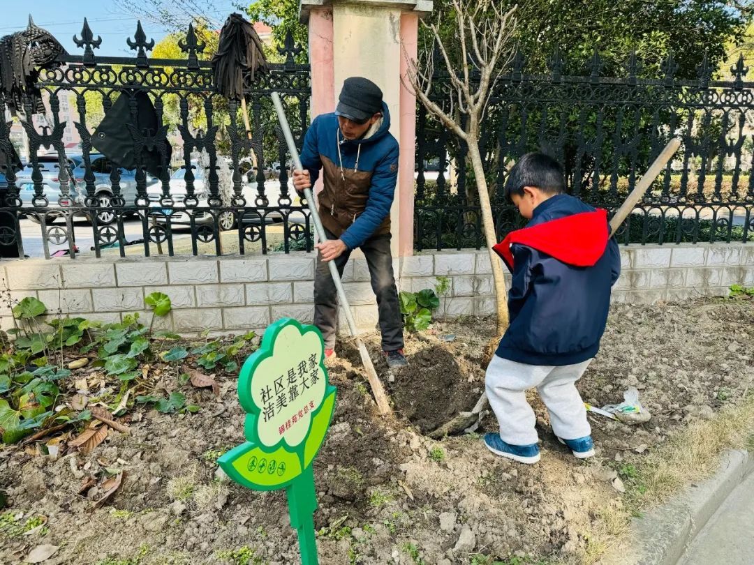 “妈妈,我们种下的这棵树明年会开花吗?”日前,方松街道绿景苑小区一角,居民李女士和孩子经过挖坑培土、浇水施肥,成功栽种一株樱花树苗。和他们一样,该小区当天共组织了10多户家庭参与亲子植树活动,为小区增添了一抹新绿。