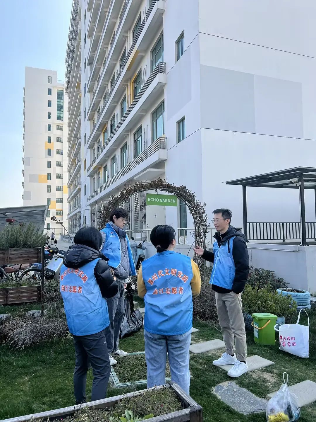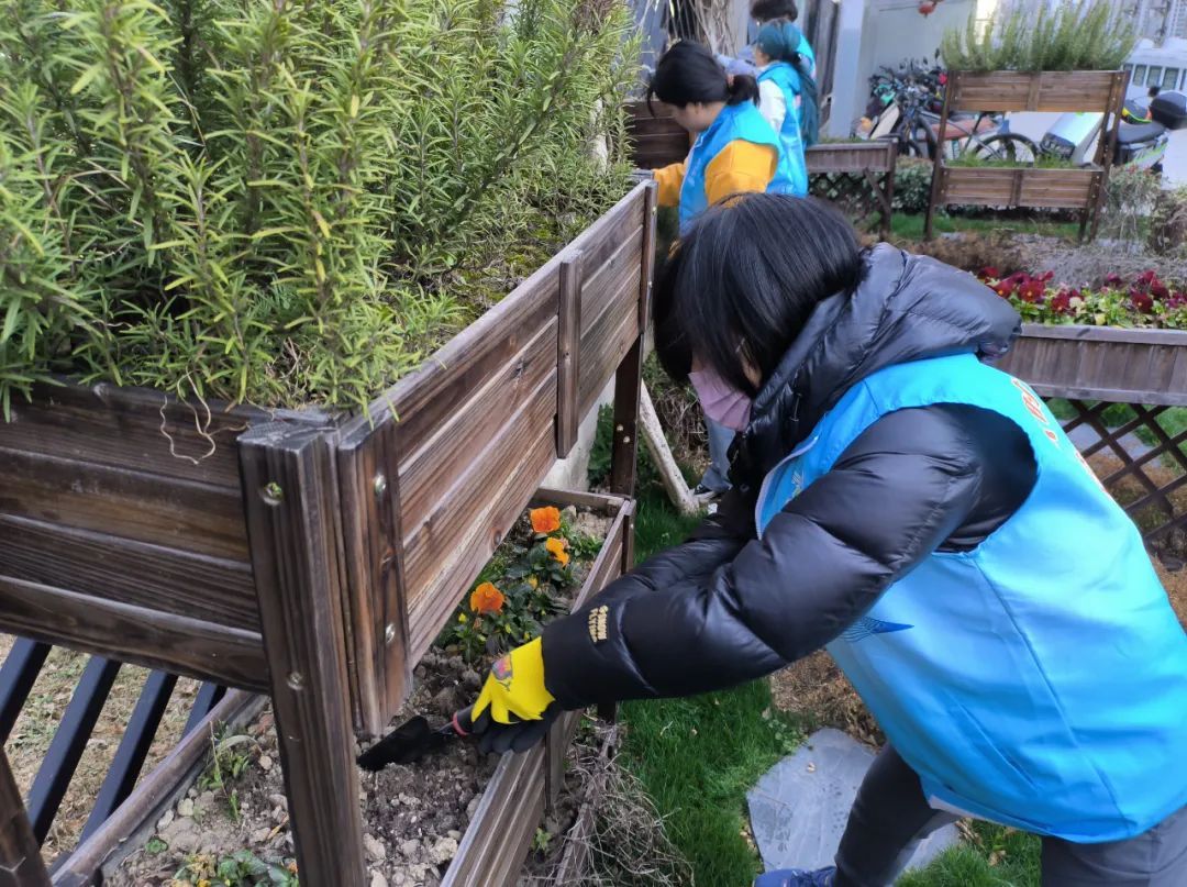 翻土、浇水、修剪、播种……志愿者们干劲十足,分工协作,开始了对花园开始修整。经过2个小时的辛勤劳作,植物墙与花箱焕然一新,刚种下的洋甘菊种子在春日暖阳下等待着萌发。随后,志愿者们就花园翻新做出新的行动规划,长成的鲜花蔬果都可随意采摘,希望能将收获的快乐传递给每一位租户。