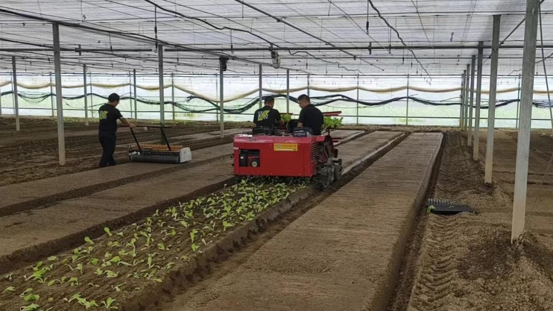 2023年,闵行新创建1家市级蔬菜机器换人示范基地,同时巩固提升4家已创建基地,通过督促指导检查,确保蔬菜生产机械化率的提升。每月,区、镇农机管理人员开展现场技术指导服务工作,包括配套农机具选定、优化茬口布局、机手培训等,同时举办绿叶菜全程机械化现场演示交流会,通过交流推进机械化、标准化生产模式,发挥示范基地对周边合作社蔬菜机械化生产的带动引领作用。目前,区域内5家示范基地在青菜等6个绿叶菜主栽品种生产中,实现翻耕、播种、移栽、植保、收获等环节全程机械化操作,亩均人力成本从8人减少至2人,生产效率提高75%,蔬菜产量提升15%。