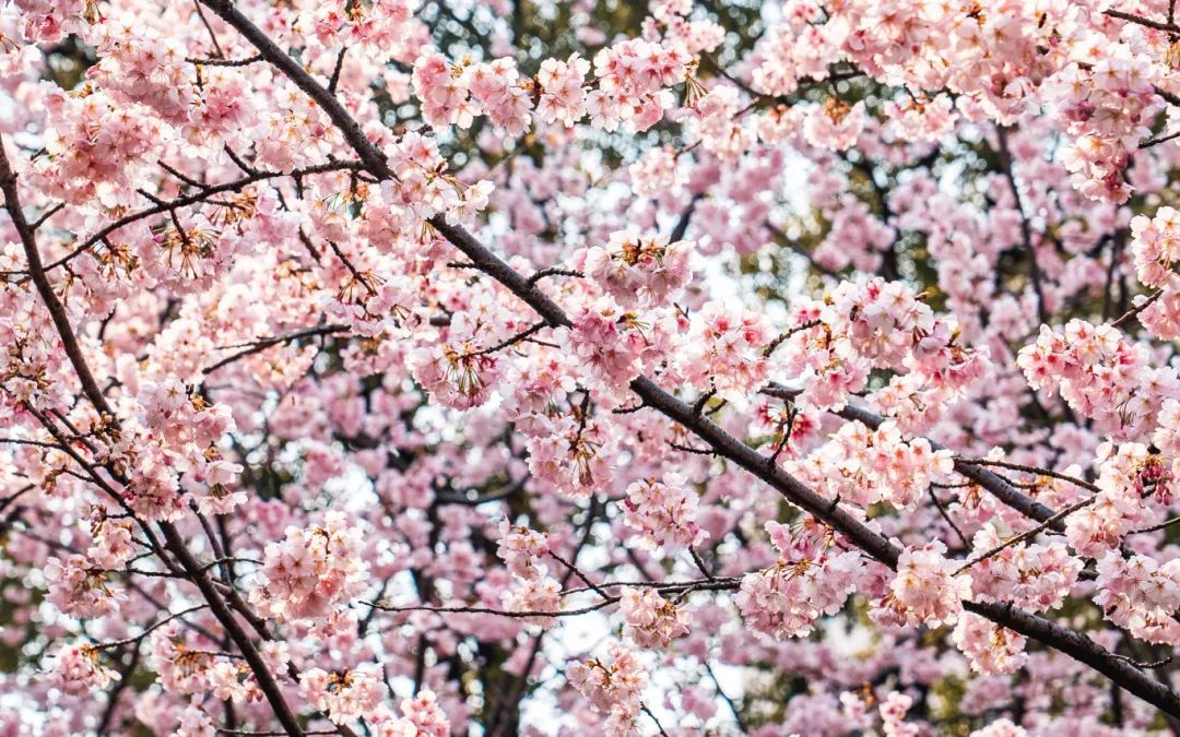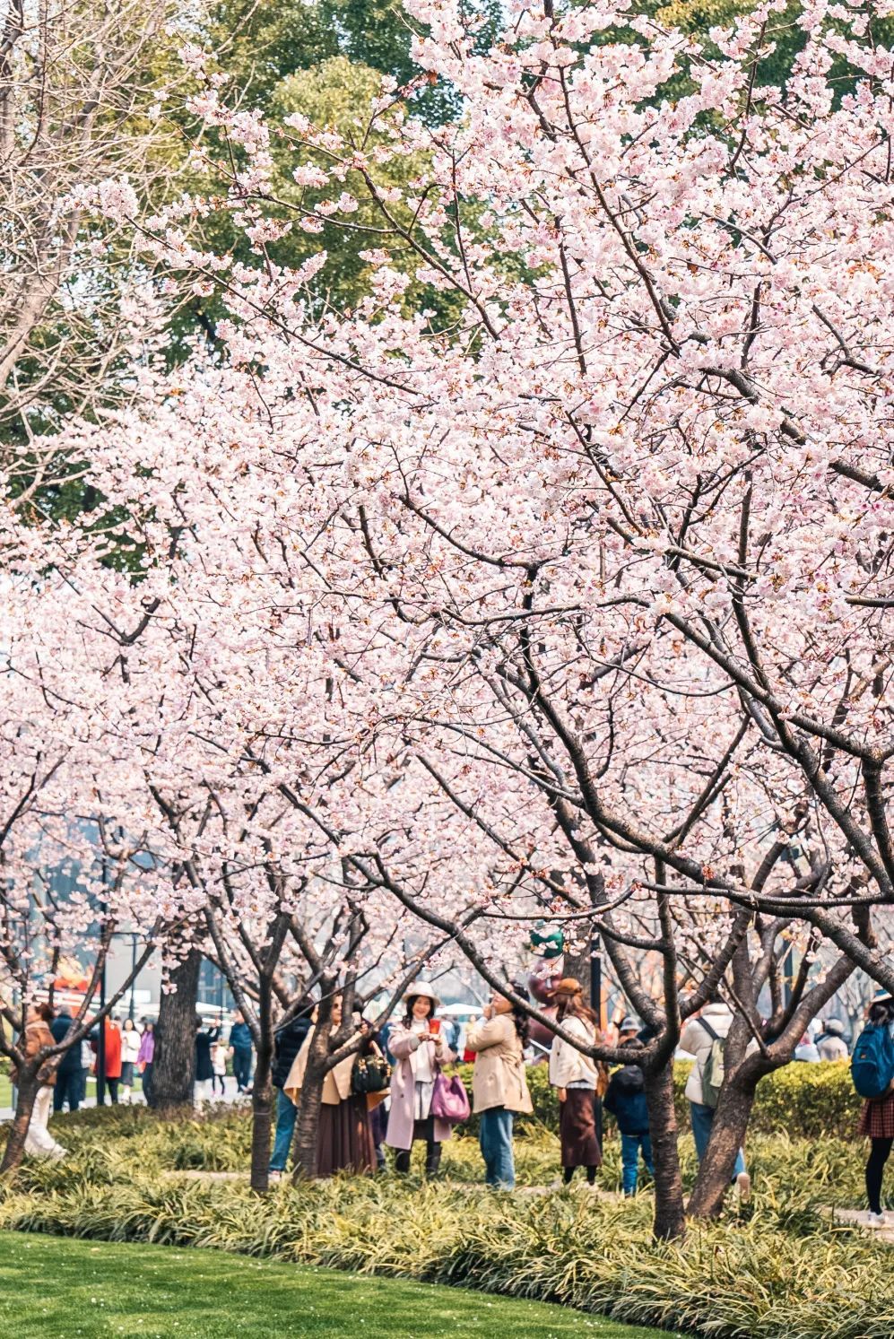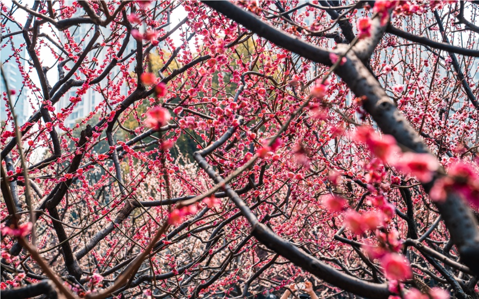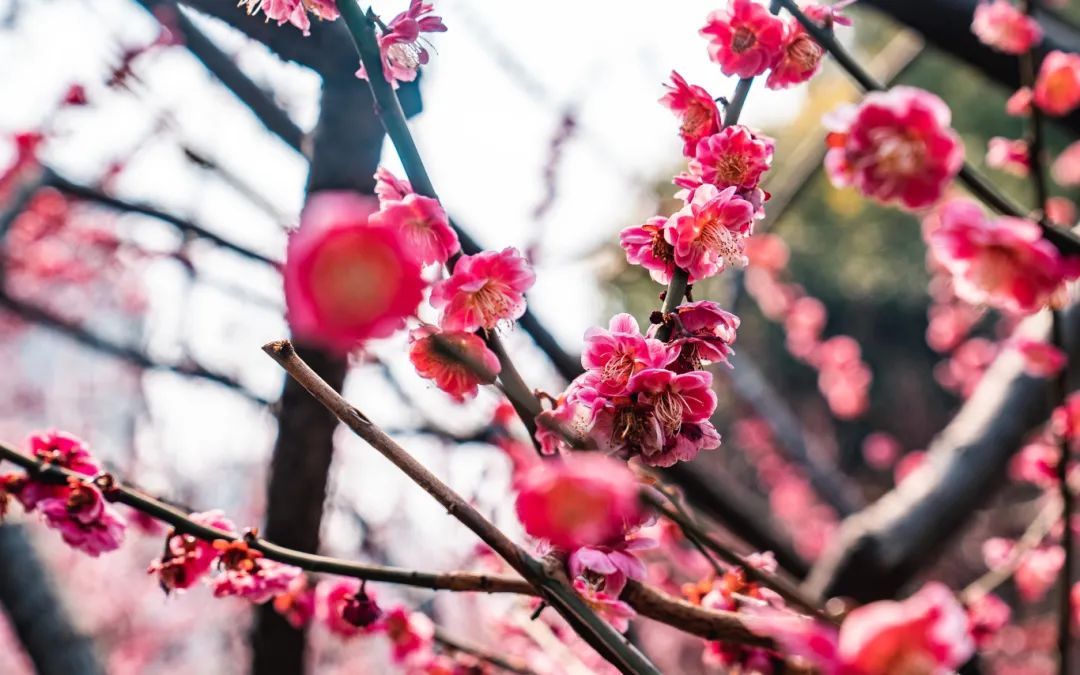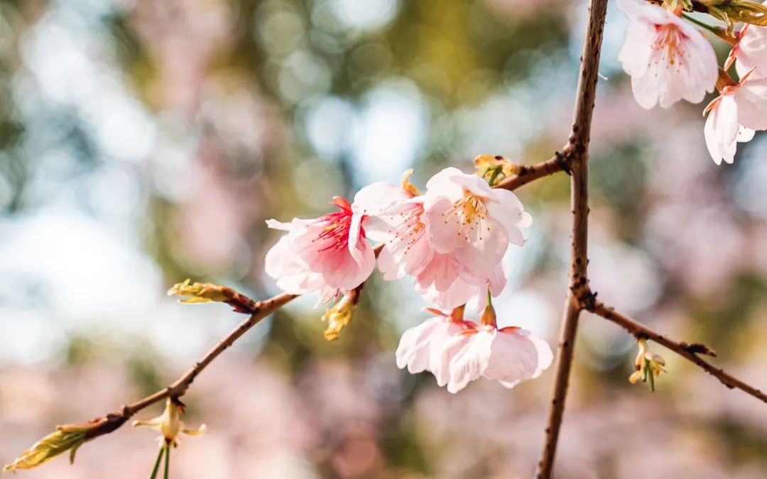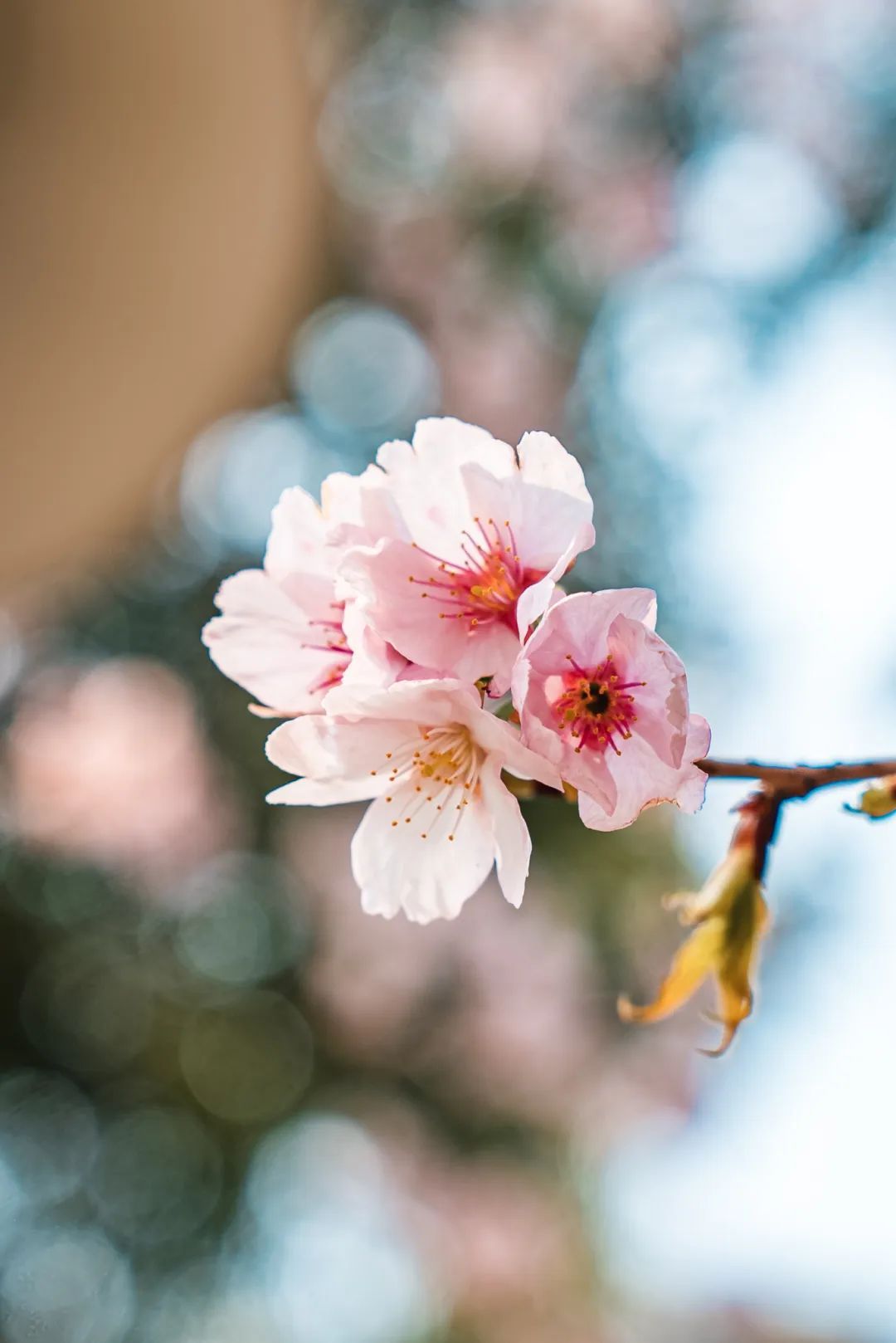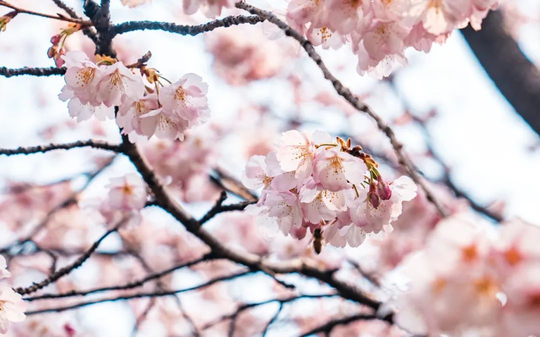 满树花蕾和花瓣在春雨的沐浴下更显饱满剔透