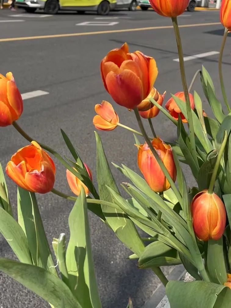 街边的郁金香虽有凋零,