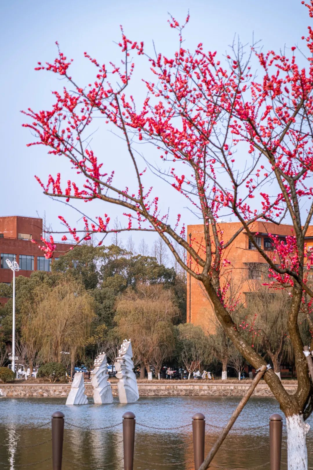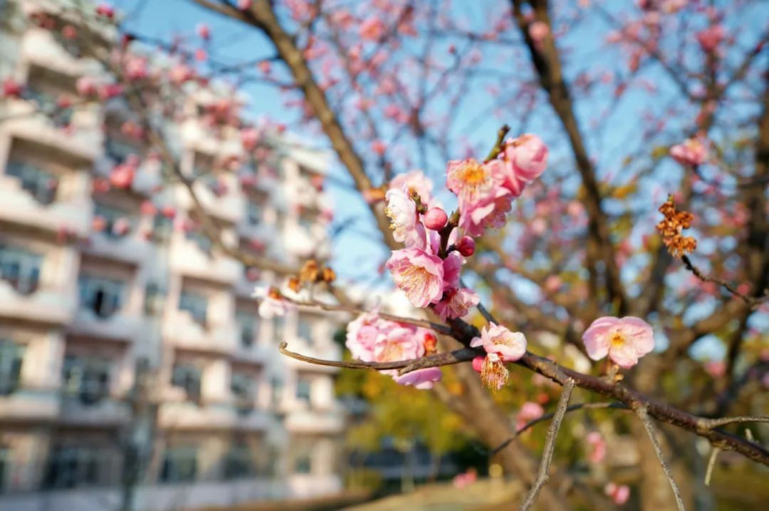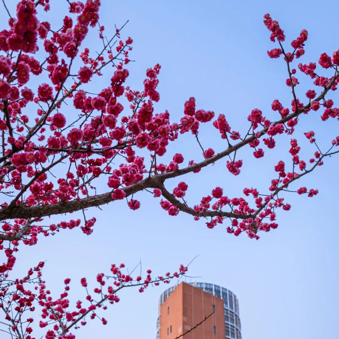 红梅报春,玉兰缀上枝头。春花已开遍,上大园也攒了万千思念,等待着与你相见。