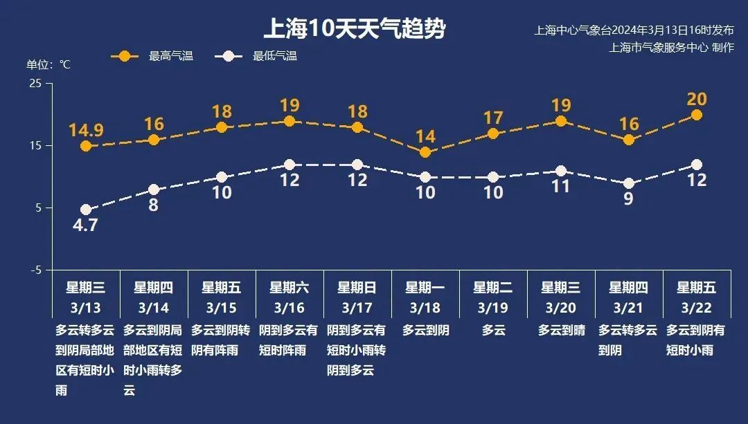 受暖湿气流加强影响,本周五至周日气温继续攀升,最高气温可达18~19℃,最低气温也站上10℃大关,升温的同时伴有阵雨袭扰,出行建议备上雨具。