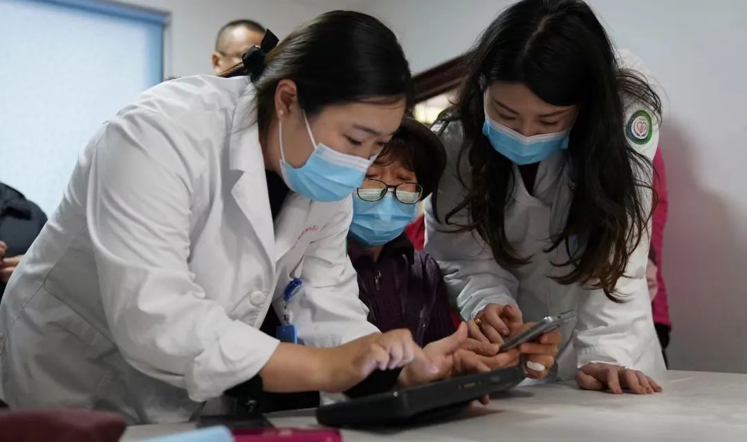 他们耐心仔细地解答着老人们提出的关于医疗、健康方面的问题,一对一进行答疑解惑,手把手指导老人使用“互联网诊疗”、家庭医生签约等服务。