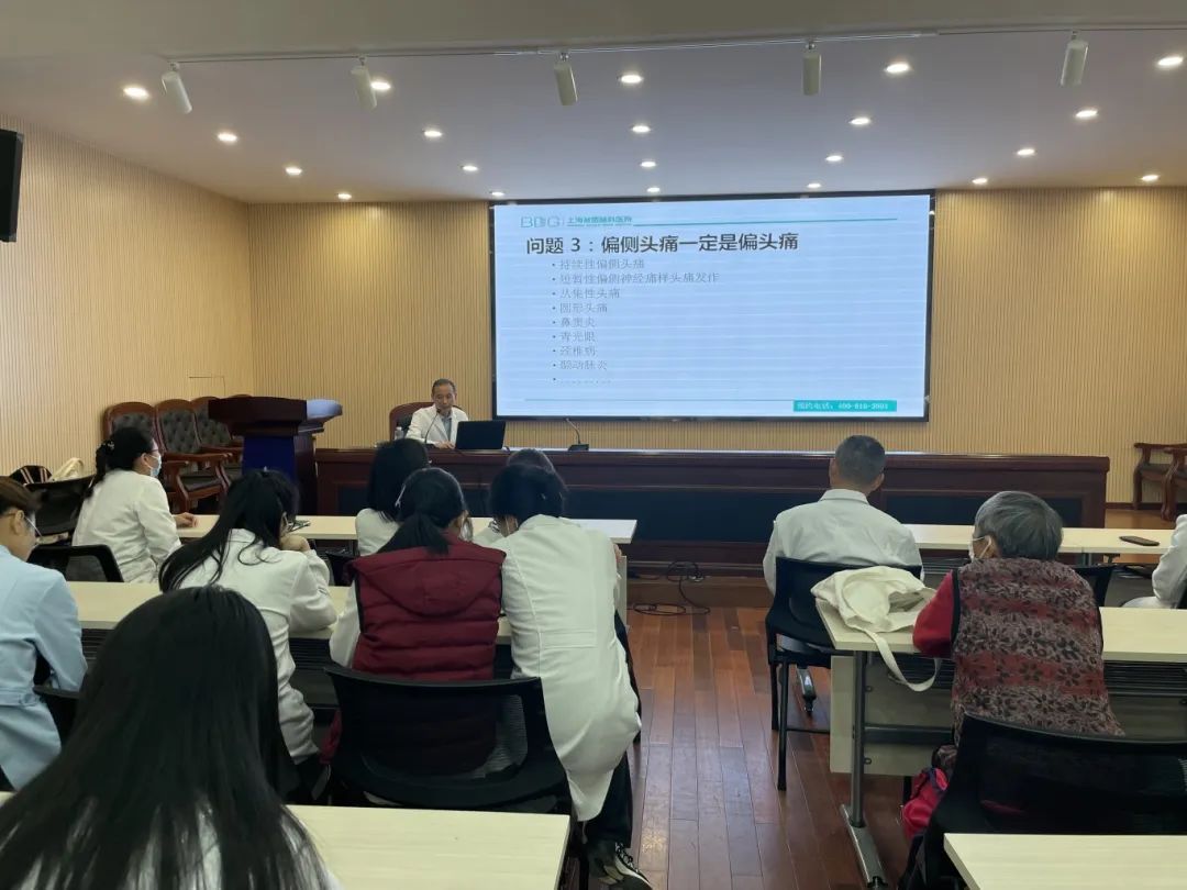 为积极响应国家卫健委《健康生活行动(2019—2030年)》的号召,根据市政府进一步提升本市社区卫生服务能力的实施方案,实现优质专科医疗资源赋能社区,全面提升社区卫生诊疗能力,服务居民健康,今天(3月15日)下午,青浦区徐泾镇社区卫生服务中心举办社区医生脑专科知识宣讲培训活动。活动现场,上海冬雷脑科医院神经内科专家主任薛战尤以自身丰富的临床经验和深厚的医学知识,为社区医生们带来了一场生动的授课,主要进行了“偏头痛的诊治思路”培训及“精准诊断与案例分析”授课。