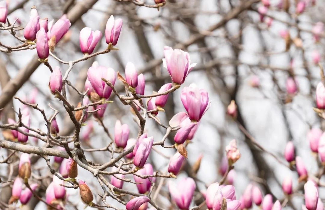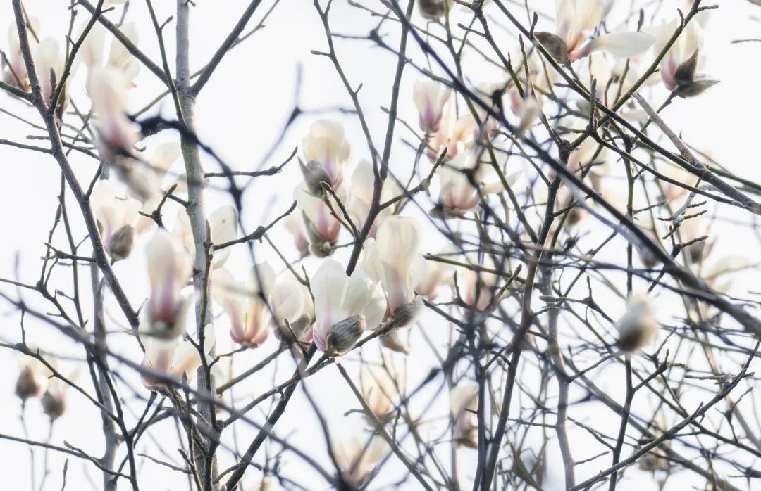 公园内的上海市花玉兰也已悄然绽放,为沁园湖增添了一抹高洁的色彩。在提前盛开的花朵上,覆盖有一抹粉紫色,还未开放的紫玉兰花苞也传递着春天已经到来的讯息。