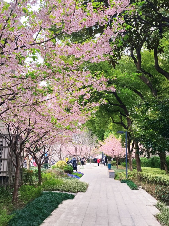 此外,彭浦四季公园的春园中,数十棵色彩艳丽的钟花樱也迎来了盛花期。在接下来的春天里,洁白如雪的豆梨花、浪漫紫色的紫荆花也会相继在彭浦四季公园的春园中盛开。