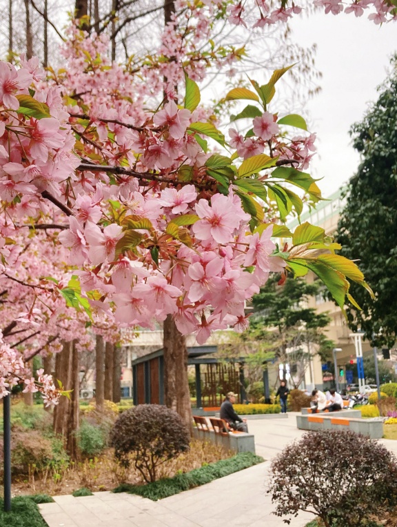 和公园里人头攒动的景象不同,这里的樱花让上下班通勤路过的人收获一份“不期而遇”的惊喜,白天点亮了一天的好心情,傍晚治愈了工作日一天的疲惫。