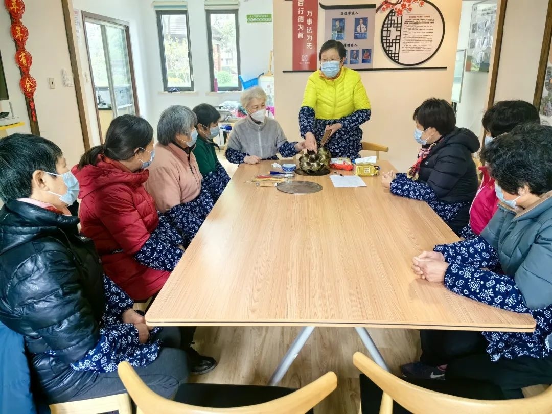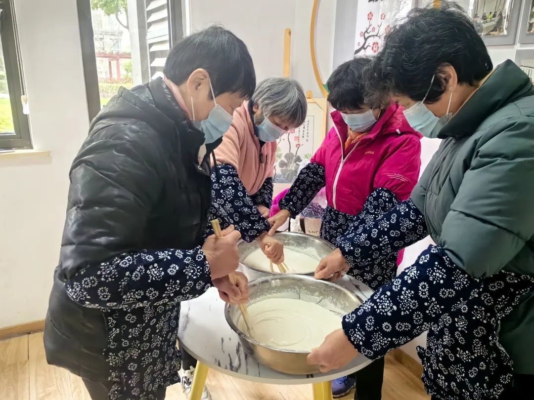 “用温水和面,搅拌面粉要顺着一个方向,干酵母、泡打粉、中筋面粉的比例是1:1:100……”下午,一堂传统美食手作公益课在金山卫镇东门居民区学习坊开展,“文明工程师”张春梅为社区居民讲解了制作海棠糕的原料、方法以及注意事项。