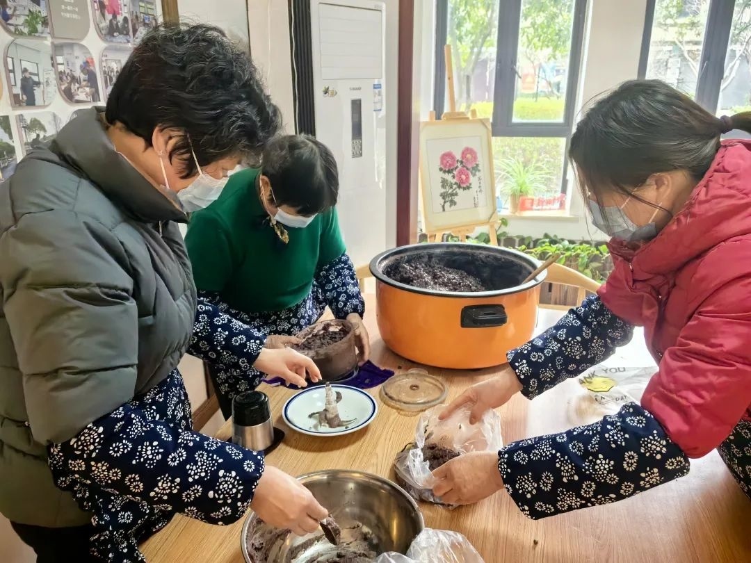 来自山东潍坊的徐绍菊也参与了海棠糕的制作,她说,“我是一名新金山人,在小区住了8年了,平时喜欢做美食,在邻居们的指导下,学会了荠菜汤团、青团、方糕等本土美食的制作方法,生活过得既快乐又充实,非常有归属感。”