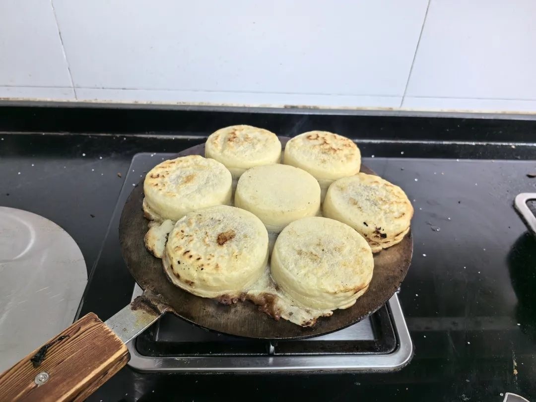在张春梅的指导下,居民们分工合作,搅拌面粉、熬制豆沙、清洗工具……不一会儿功夫,一个个热乎乎、香喷喷的海棠糕就出锅了。