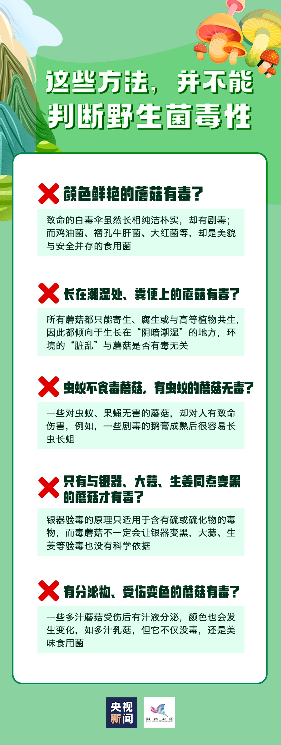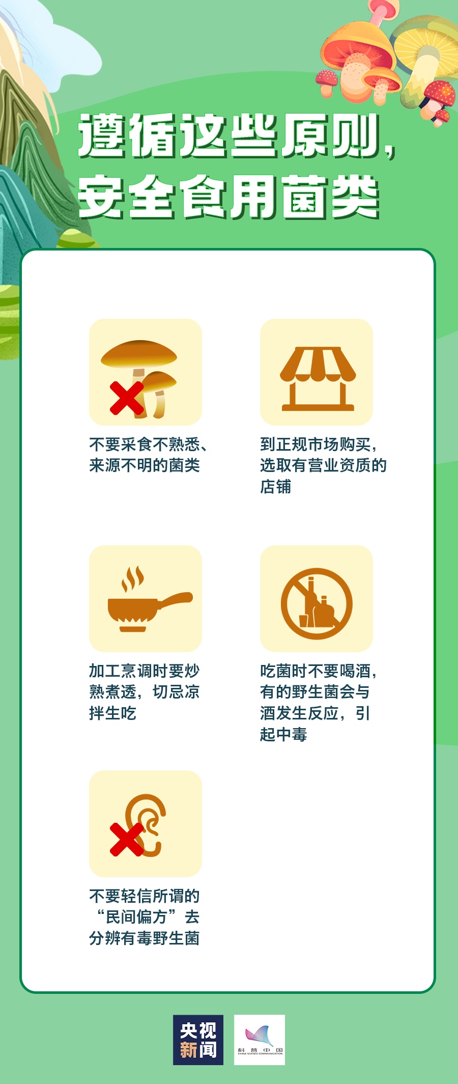 (三)不食用:要避免野生蘑菇中毒事件,关键在于不食用来历不明野生蘑菇,别贪一口鲜而不顾生命安全。家庭要慎食野生蘑菇,民俗旅游等不要加工食用野生蘑菇,学校食堂、集体食堂等禁止加工食用野生蘑菇,防止群体性中毒事件发生。