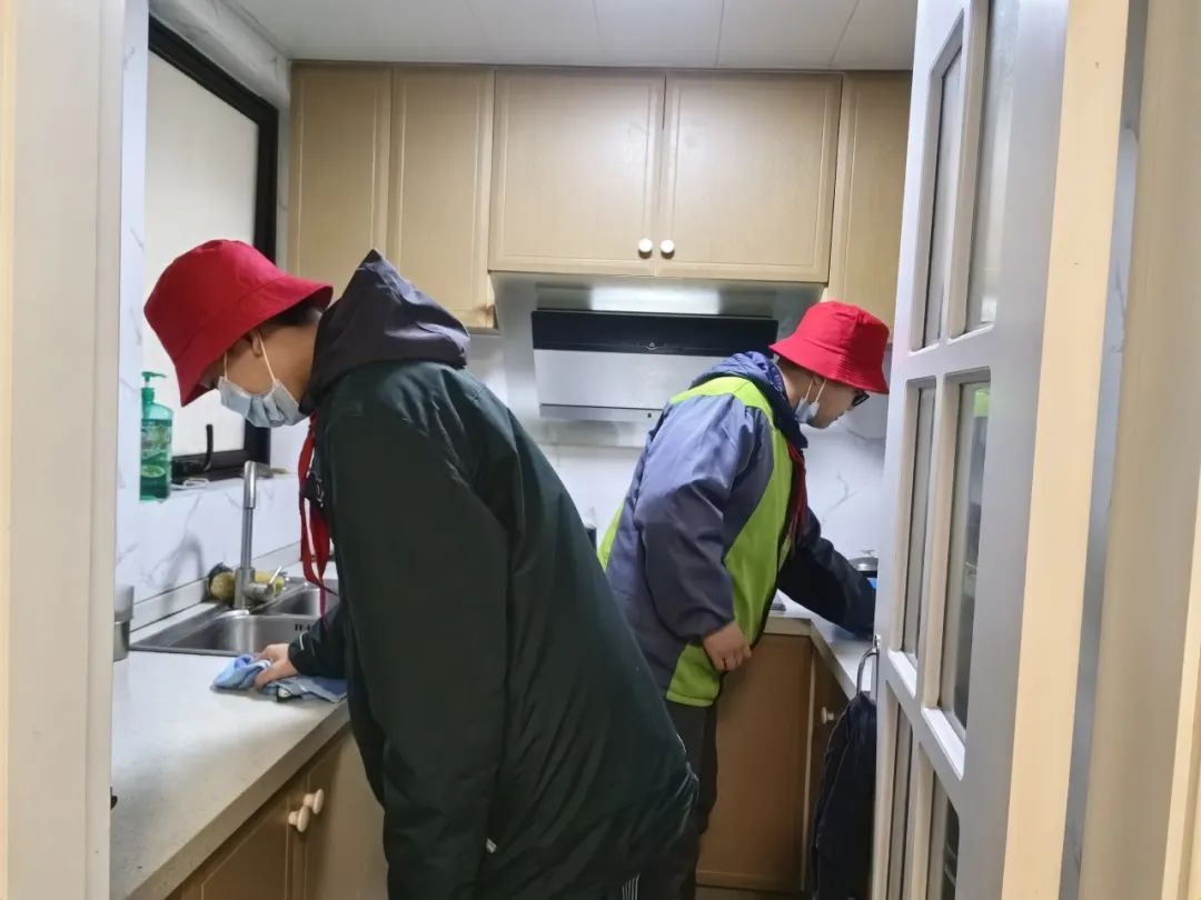 在排查过程中,看到一家高龄独居老人,同学们二话不说撸起袖子马上帮忙打扫卫生,有的擦窗、有的扫地、有的检查燃气。同学们在消防安全宣讲的同时也为辖区老人带去一份爱的温暖,弘扬中华民族敬老、爱老、助老传统美德。