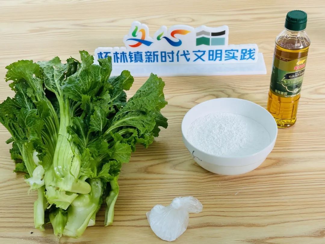 芥菜若干、面粉适量、小苏打15g、食盐适量、食用油适量