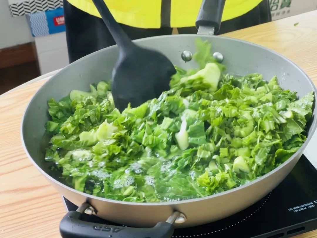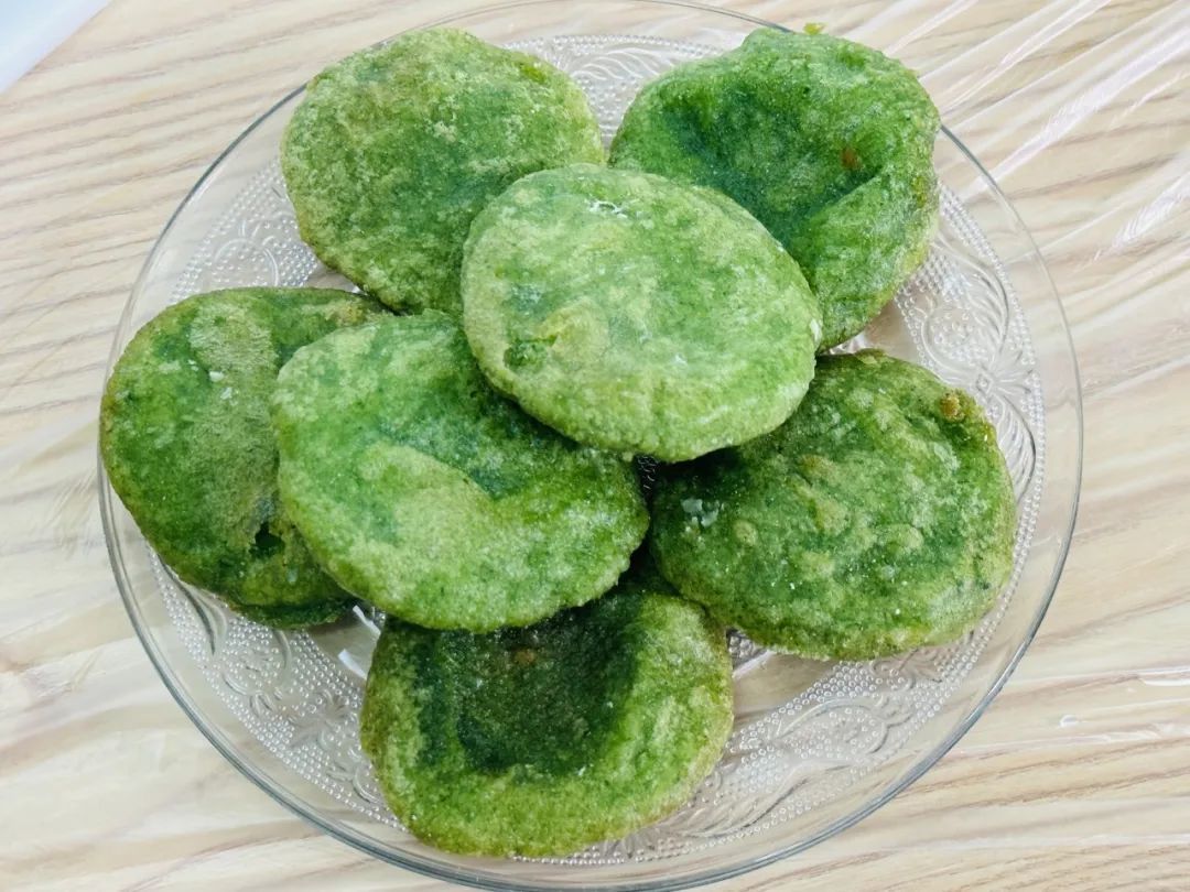 芥菜塌饼完成啦!!淡淡的咸味中又包裹着芥菜的清香。