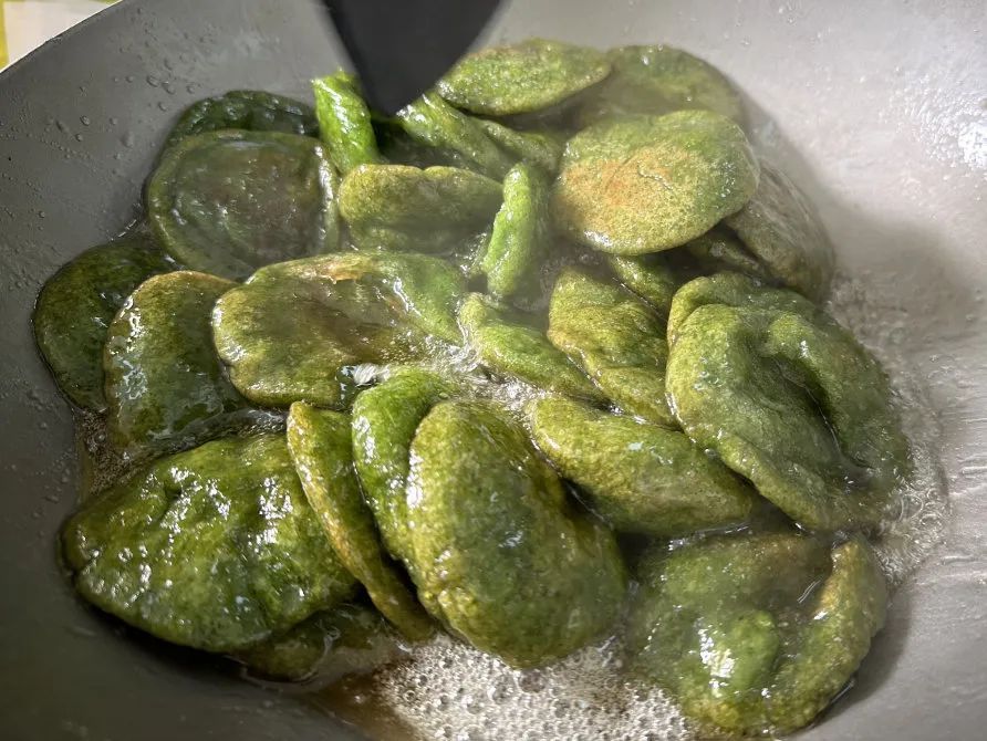 再将煎好的塌饼放入糖水收汁,