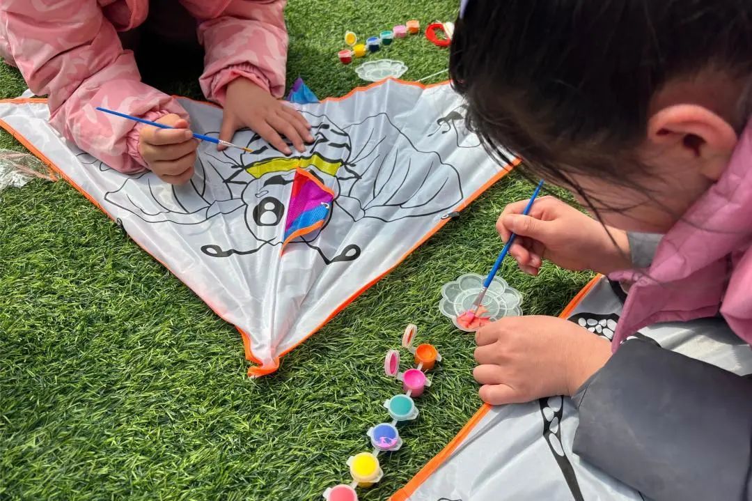 暖暖的午后,孩子们席地而坐,尽情发挥想象力,认真地画起风筝,写下梦想。看着自己的风筝遨游在碧蓝的天空中,愿一切美好皆都如愿。