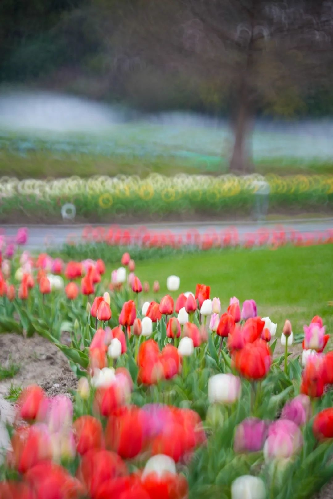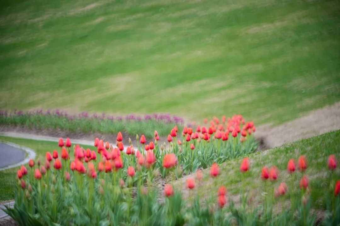 此外,园内8个色系,超24个品种的1.8万余株郁金香也已陆续盛开迎客,有“皇家紫、王朝日出、人见人爱、紫云号、白雪公主、金色柔道、克劳斯王子、羞涩小姐、拉布拉多黑、交响乐”等,种植面积达1500平方米,从花海区域一直延续到芳香花园区域,多处造型如彩虹般延展,在任意地点打卡都能拍出不一样的意境。走进花间小道,仿佛踏入了一个五彩斑斓的梦境,每一朵郁金香都娇艳欲滴,散发着迷人的香气,美得让人心动。郁金香的花期将延续至4月中下旬。