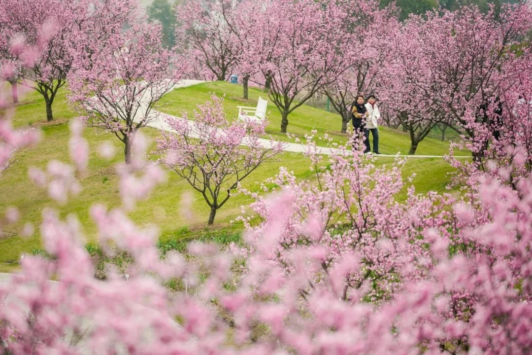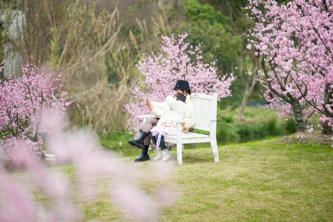 在芳香花园,粉红色的美人梅层层叠叠、如云似霞,满园嫣红蔚为壮观。游客徜徉花海,或拈花浅笑,或林间漫步,惬意悠然。各路摄影爱好者或是直奔观景平台远眺俯拍满园春色,或是穿梭于花间,记录下一枝枝摇曳灵动的美。市民王先生说:“在朋友圈看到花开海上的美人梅开得正盛,今天就和家人一起来瞧瞧。每个花期都来,不舍得错过。”