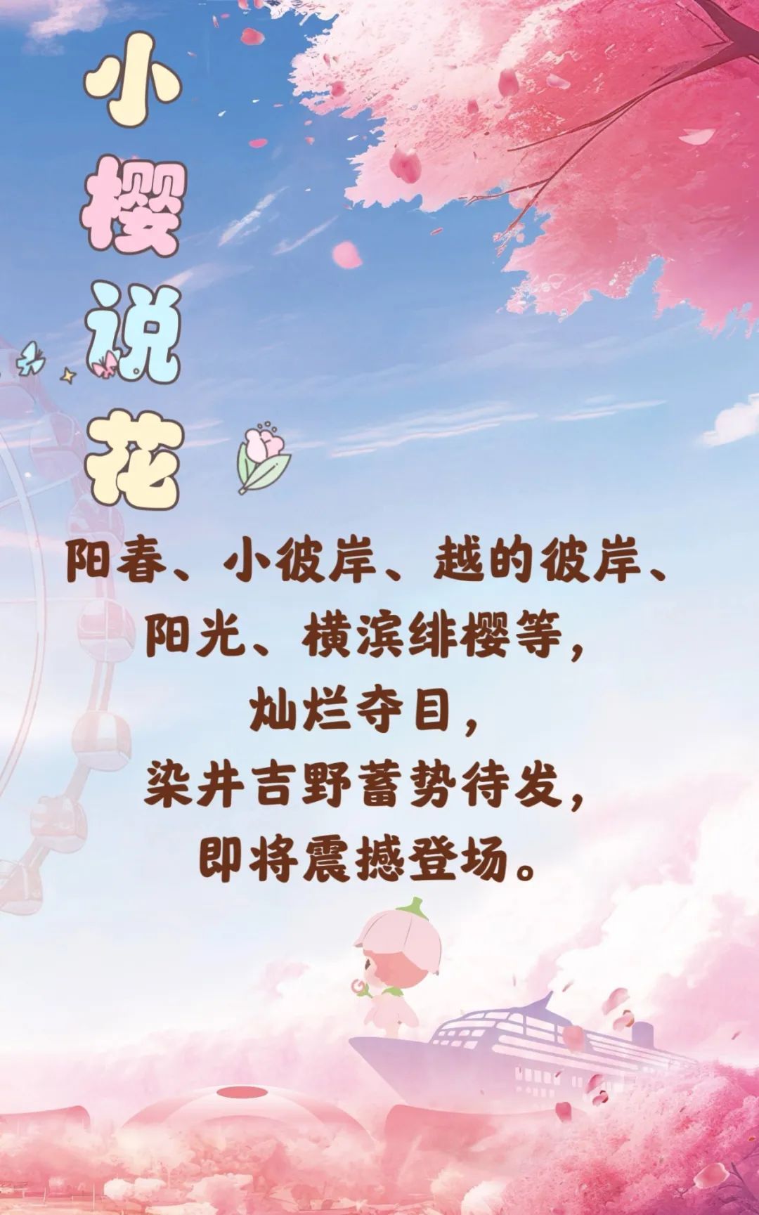 阳春、小彼岸、越的彼岸、阳光、横滨绯樱等樱花品种已进入最佳观赏期,春风拂过,花朵轻轻摇曳,传递出春日浓浓的美好气息。