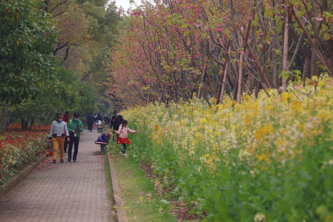 目前,园内的垂丝海棠、郁金香、油菜花、二月兰等花卉竞相绽放,色彩靓丽,快来打卡这个多巴胺春日吧!