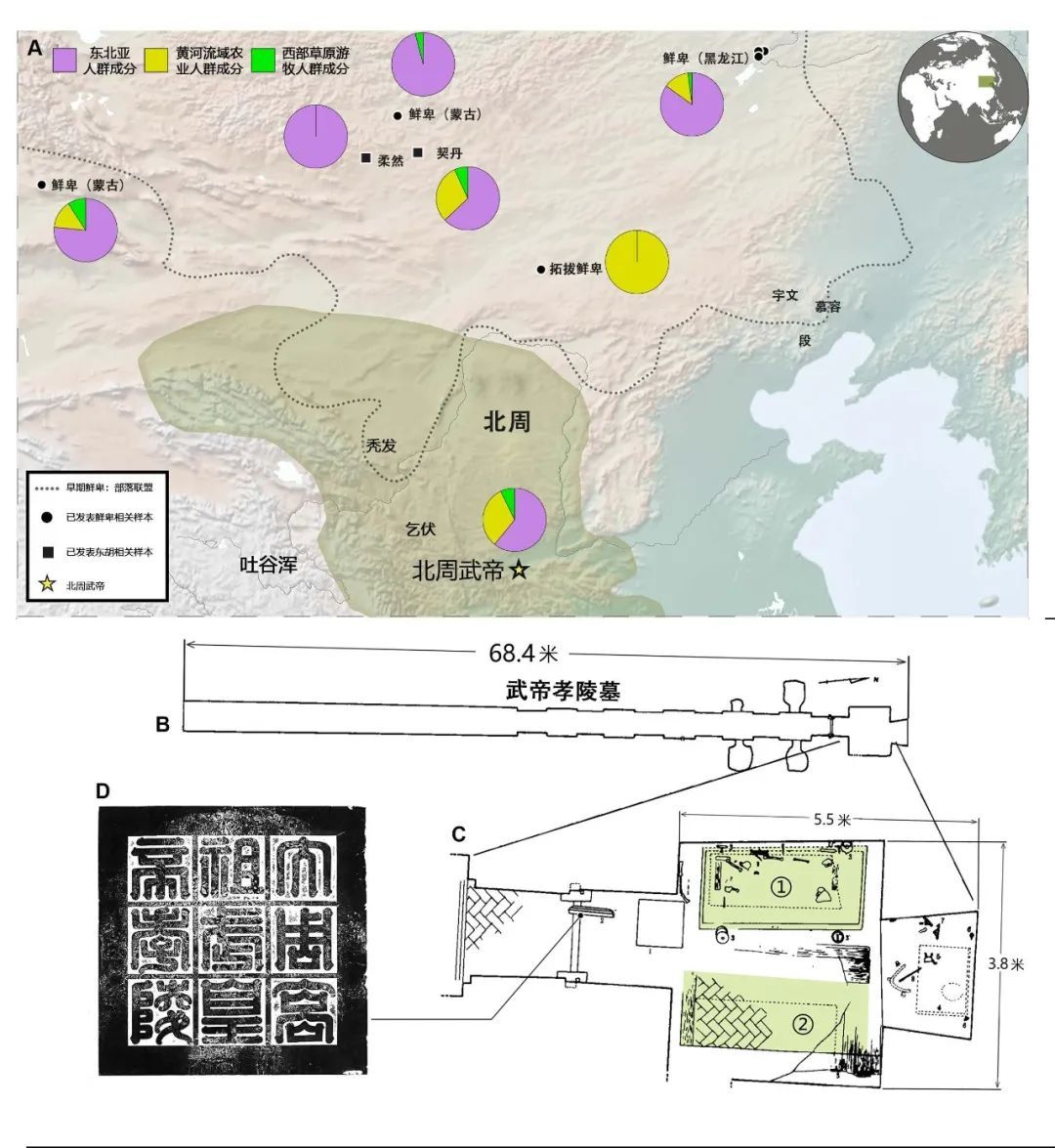此外,鲜卑人群的起源之说也是历史学和人类学领域的重要课题。通过对武帝基因组进行分析,团队从遗传学角度揭示了武帝及其家族的族源,对理解鲜卑人群的起源提供了重要证据。