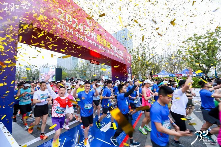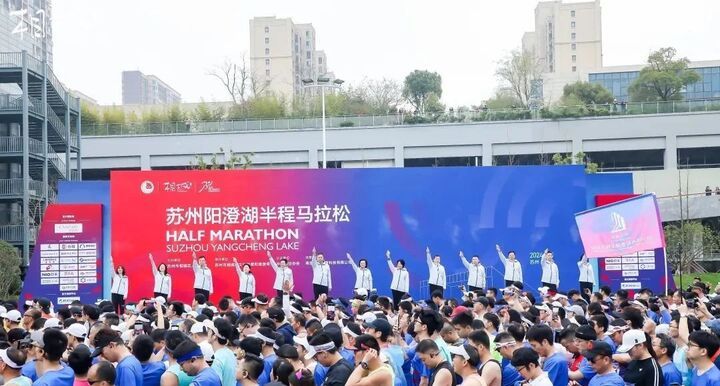 交汇点讯 今天(3月31日)上午7:30,随着一声清脆的号令枪响,2024苏州阳澄湖半程马拉松激情开跑,近万名参赛选手阔步迈向苏州“春天里”。