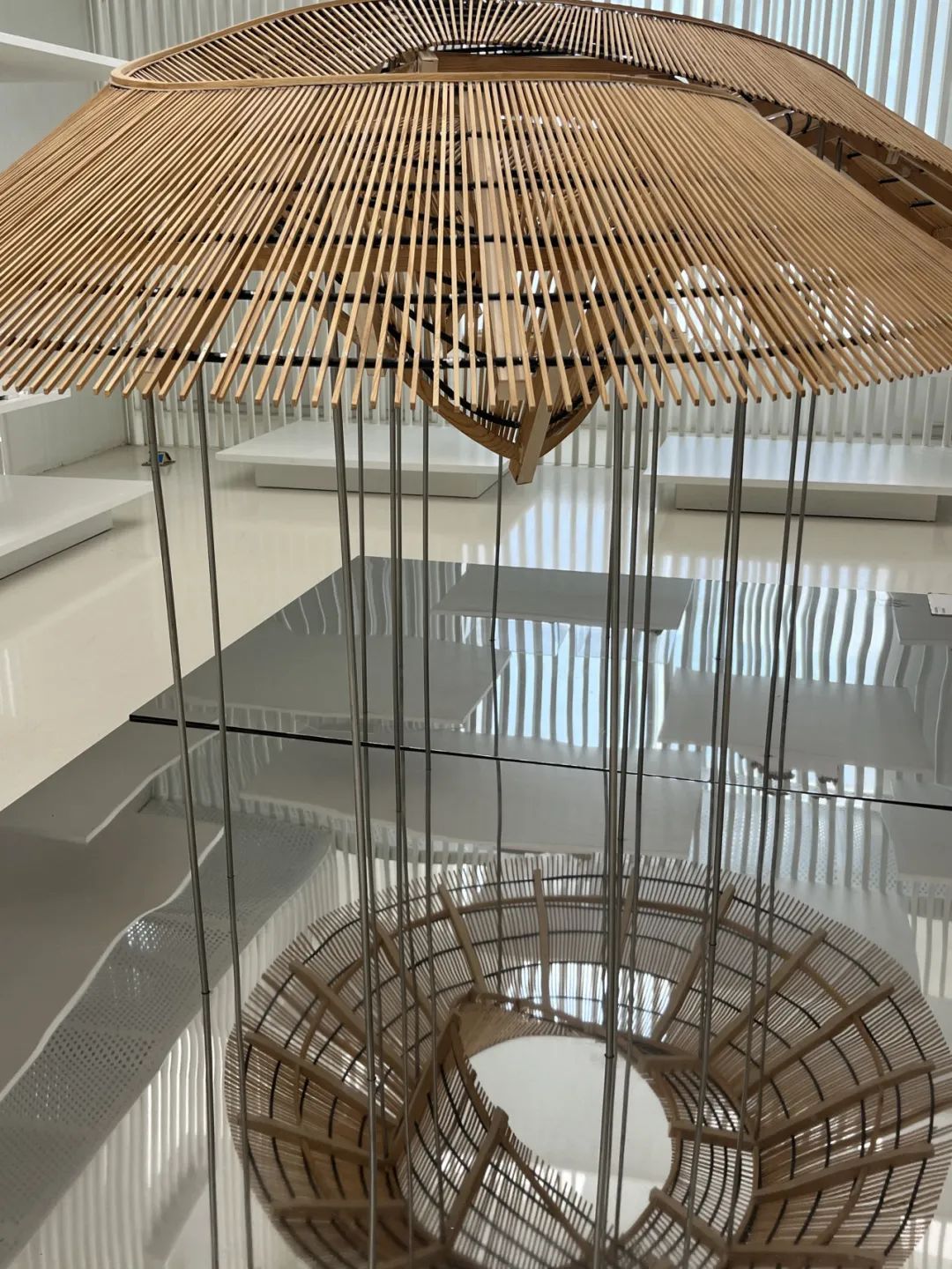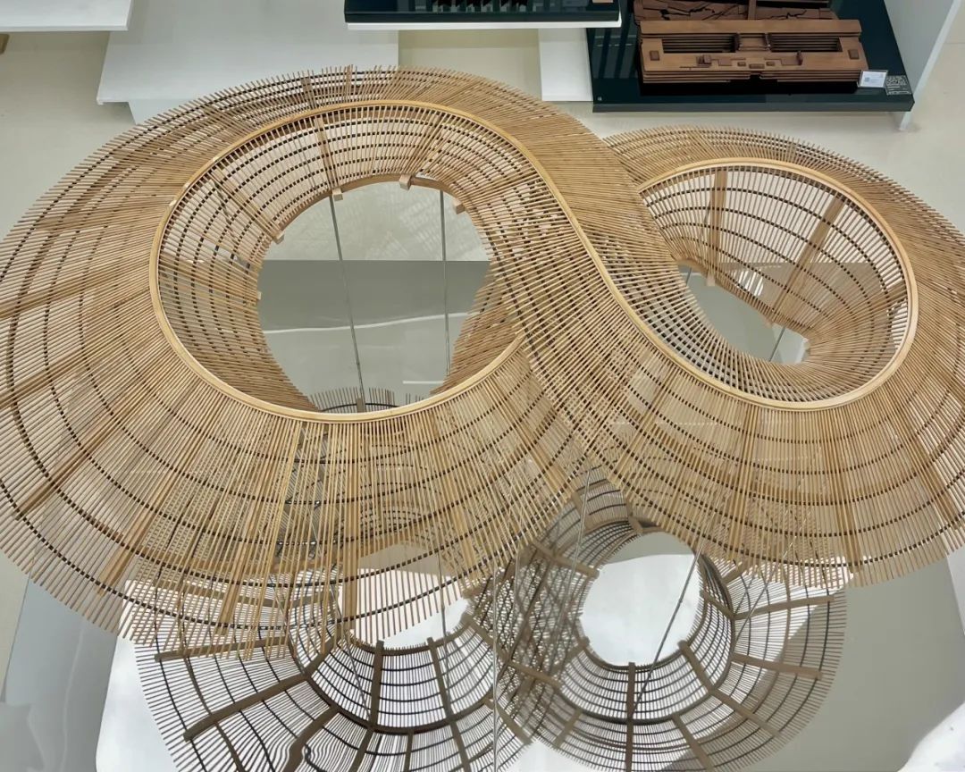 竹艺是中华传统文化中不可或缺的一部分,在几千年的中国历史中,我们总能在各式各样的艺术作品中发现“竹”的踪迹。在中国建筑模型博物馆中,多次斩获国际建筑大奖的同济大学教授袁烽的作品《竹里》,仿佛带领参观者穿梭去了道明·竹艺村。