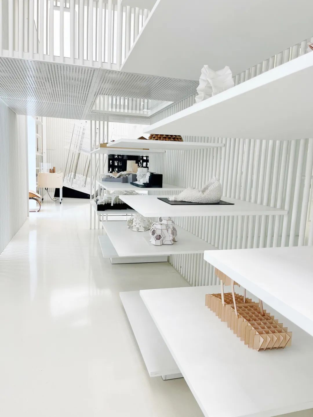 步入江场三路191号风语筑创意大楼9层的建筑模型博物馆,几乎倾泻而出的白色铺满眼前,整个展览空间仿佛一个“白色迷宫”,林立的灰白线条隔出无数的阴影,营造出十足的空间感。