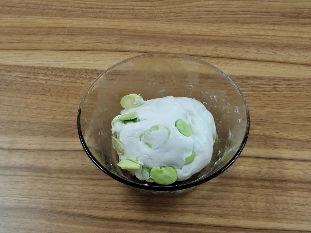 加入蚕豆,揉成紧实的面团。