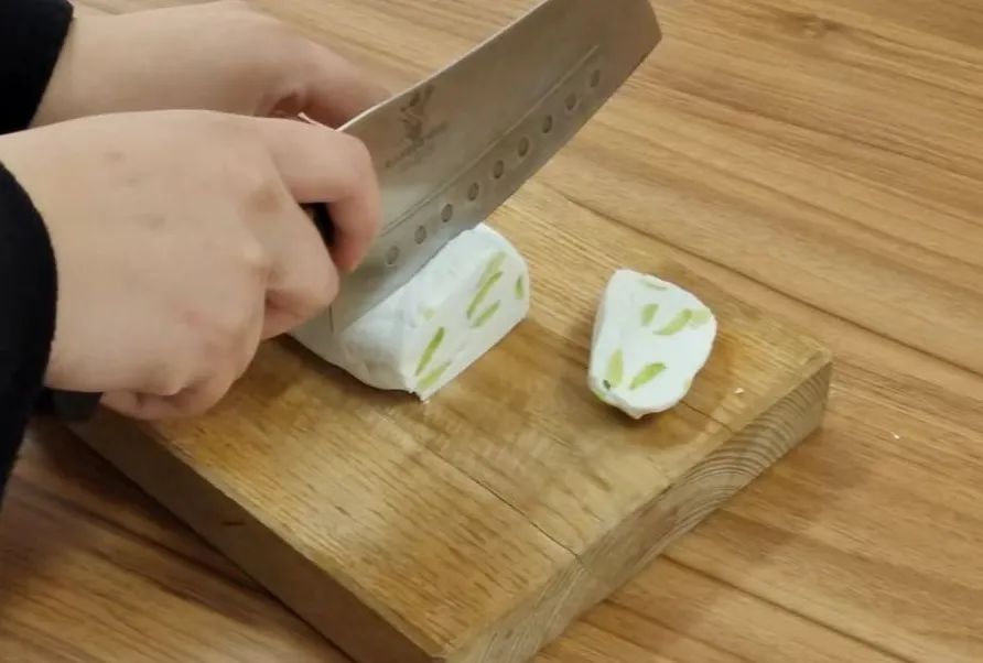 冷藏后取出,切成1厘米左右均匀的厚片。