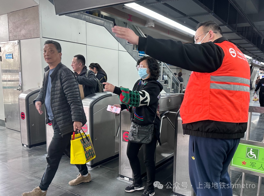 在5号线闵行开发区站,针对扫墓客流,增设了友情提示牌和移动导向牌,安排志愿者在关键部位引导乘客,并由“新城之馨”服务团队提供出行指南,为乘客提供便利。此外,针对行动不便的特殊人群,车站还实施“爱心接力”工作,为他们提供优质暖心的乘车体验。