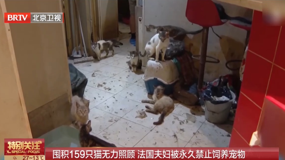 据报道,一对法国夫妇住在大约80平方米的公寓内,家中养了159只猫和7只狗。按我们的理解看,也就两室一厅的房子,竟然住下一百六十多只动物,里面的情况可想而知。